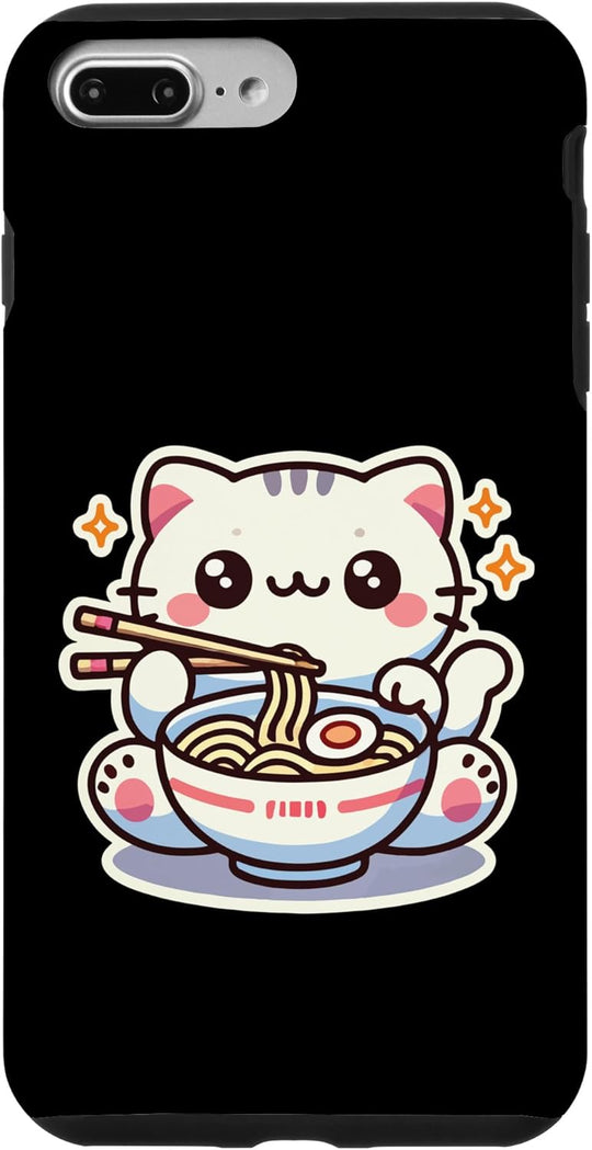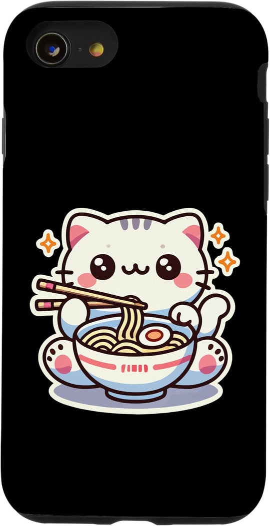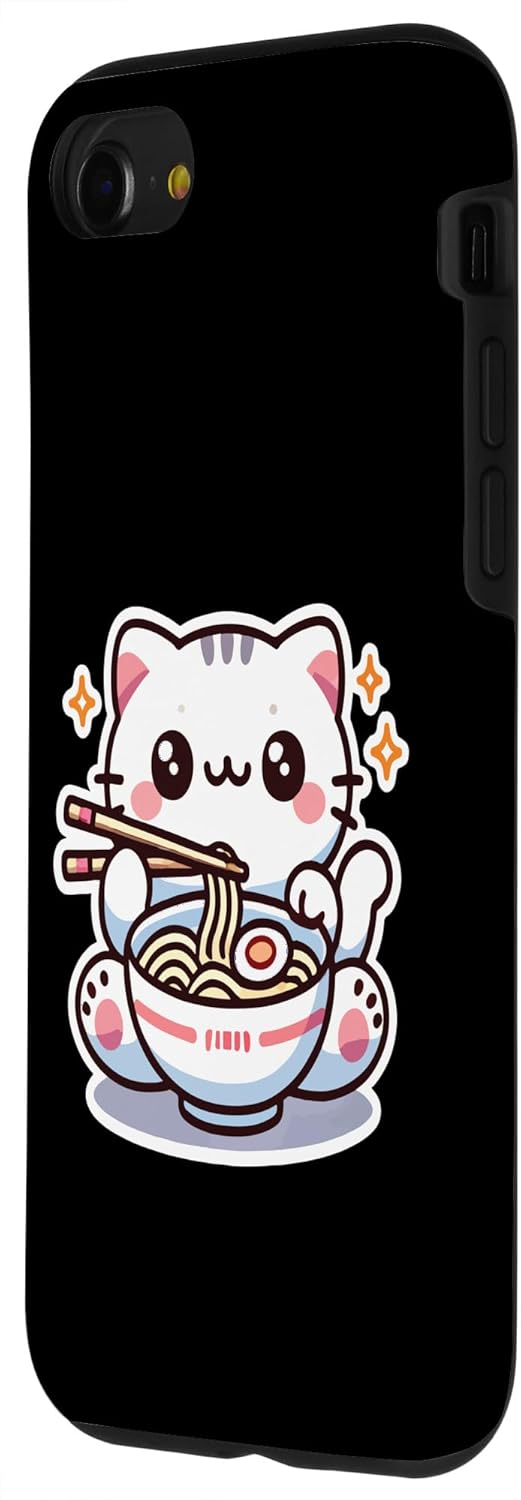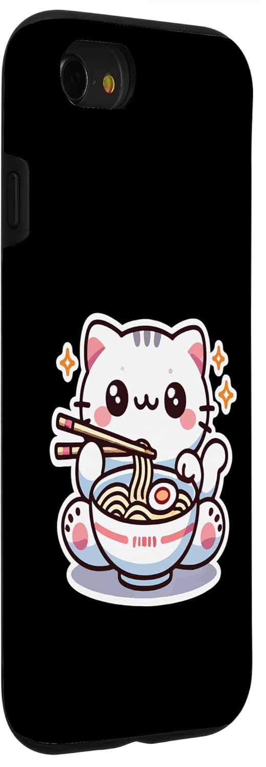 かわいいアニメ猫がラーメンを食べるかわいい日本の麺 スマホケース iPhone SE (2020) / 7 / 8 用