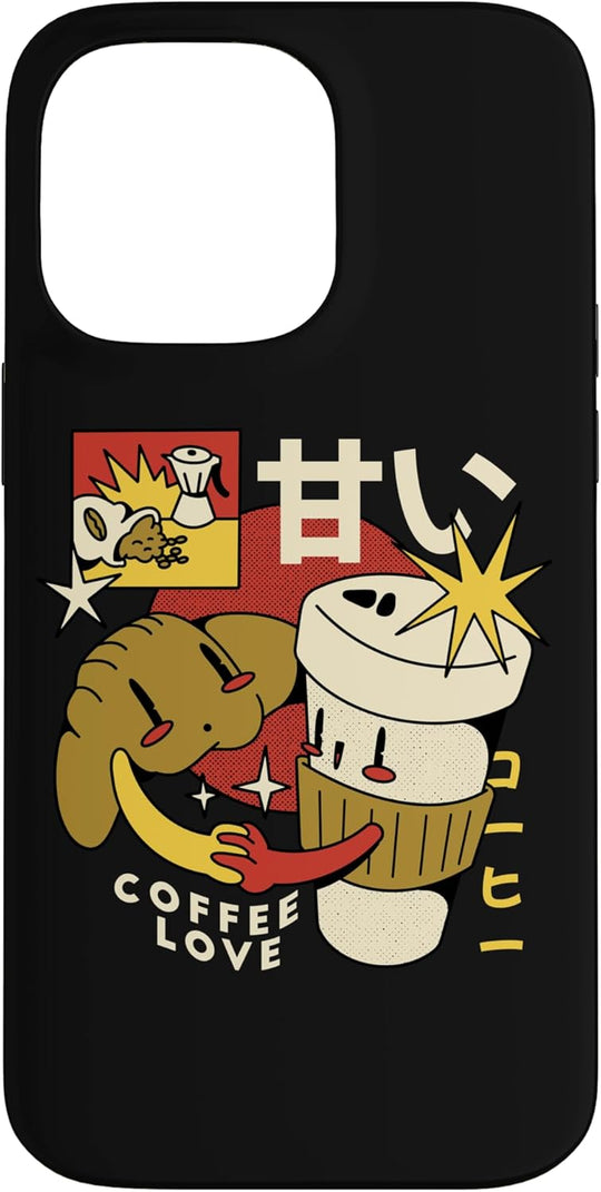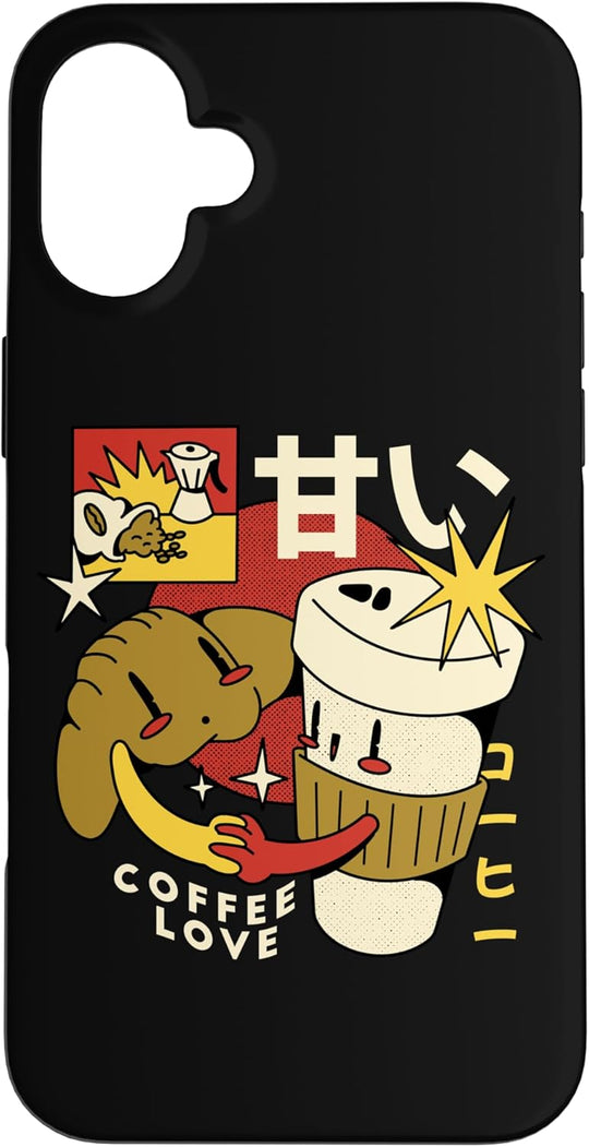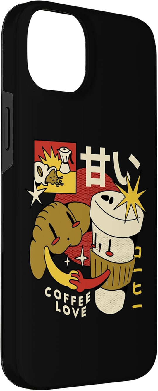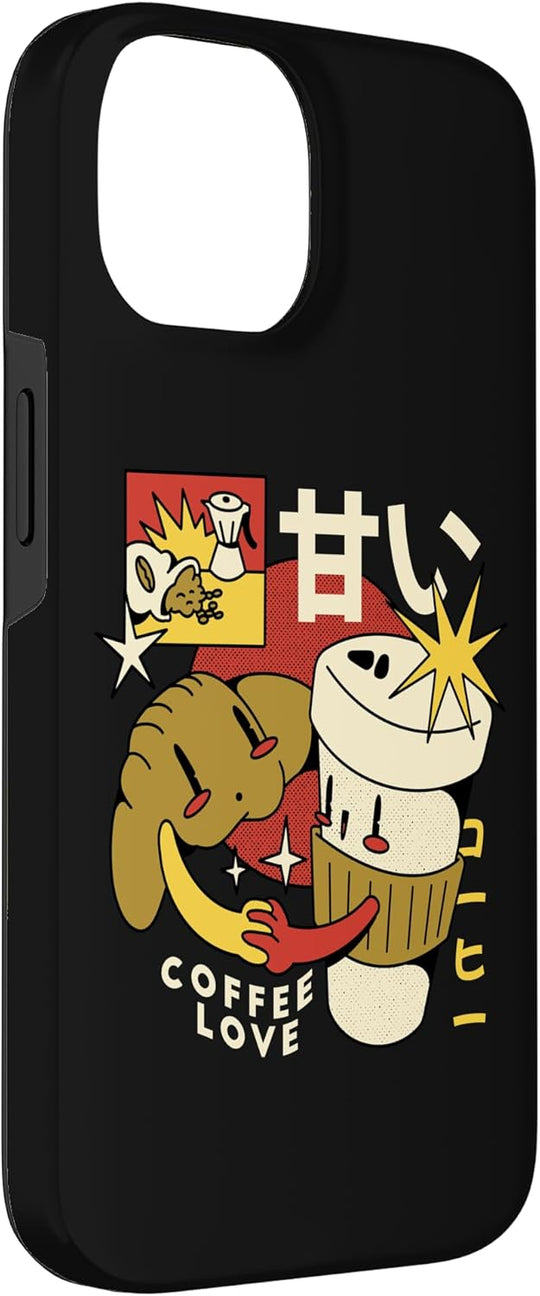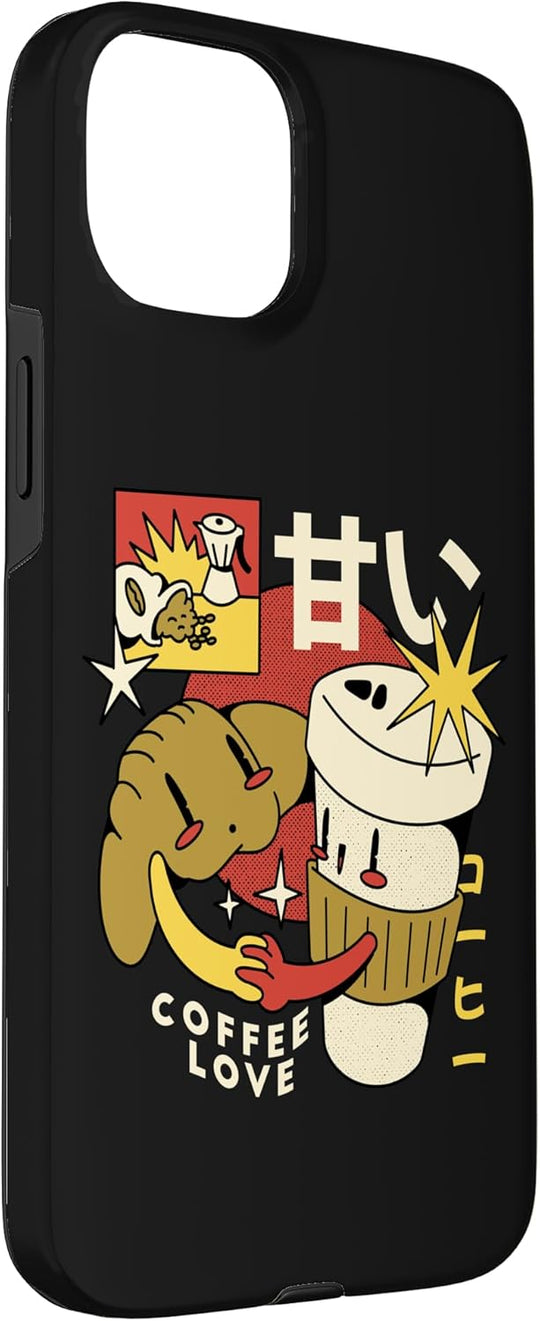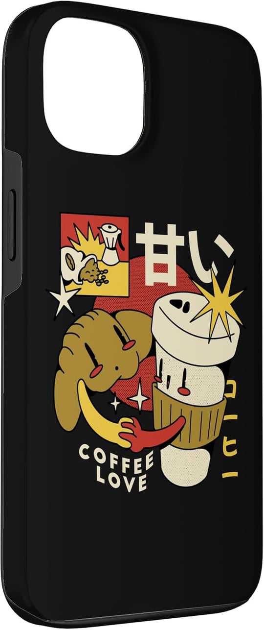 かわいい コーヒー クロワッサン 和 カワイイ レトロ ヴィンテージ 漫画 スマホケース iPhone 15 Plus 用