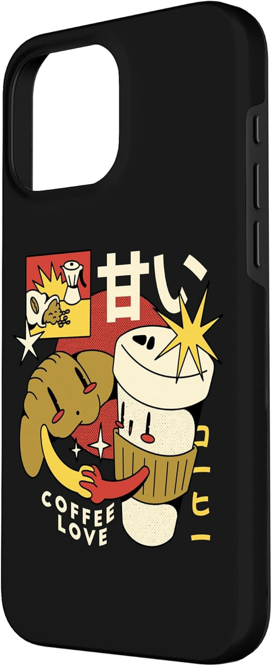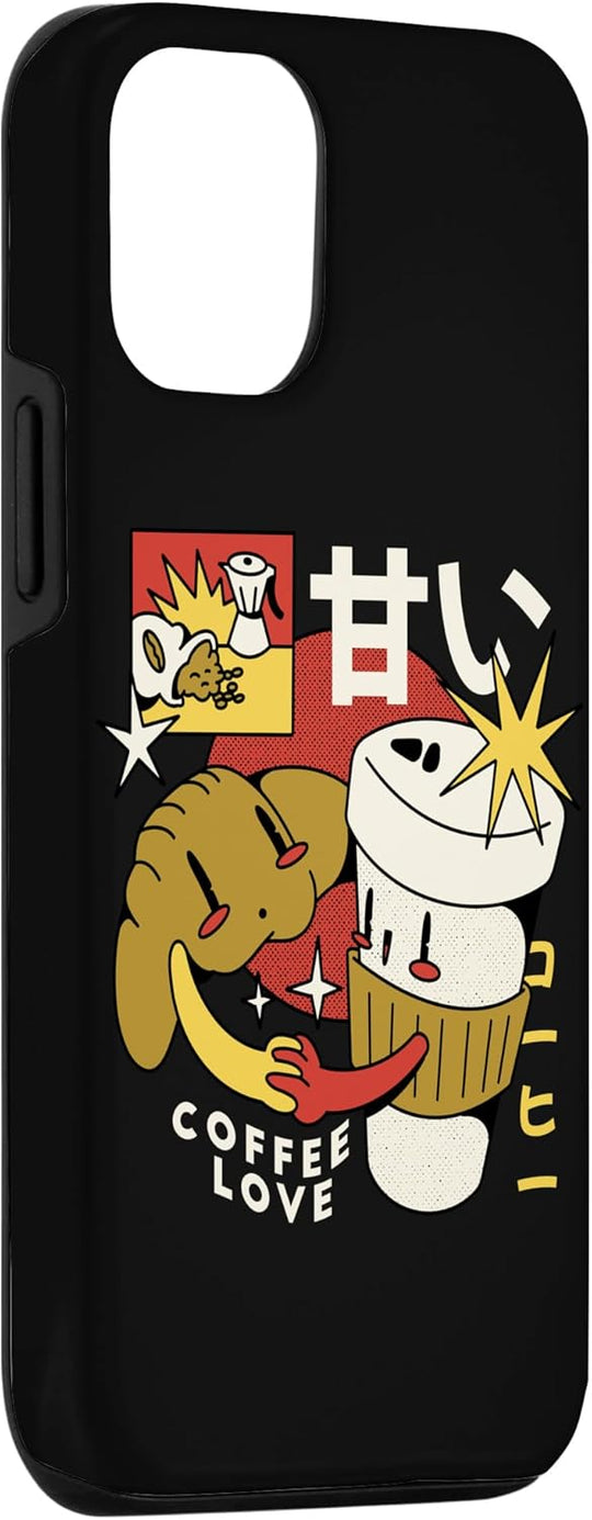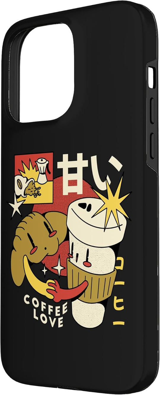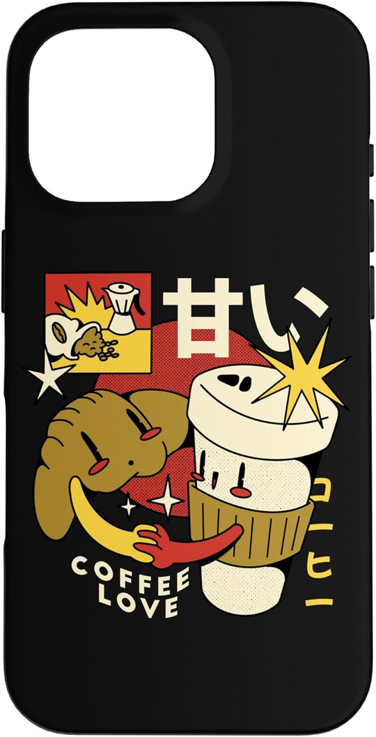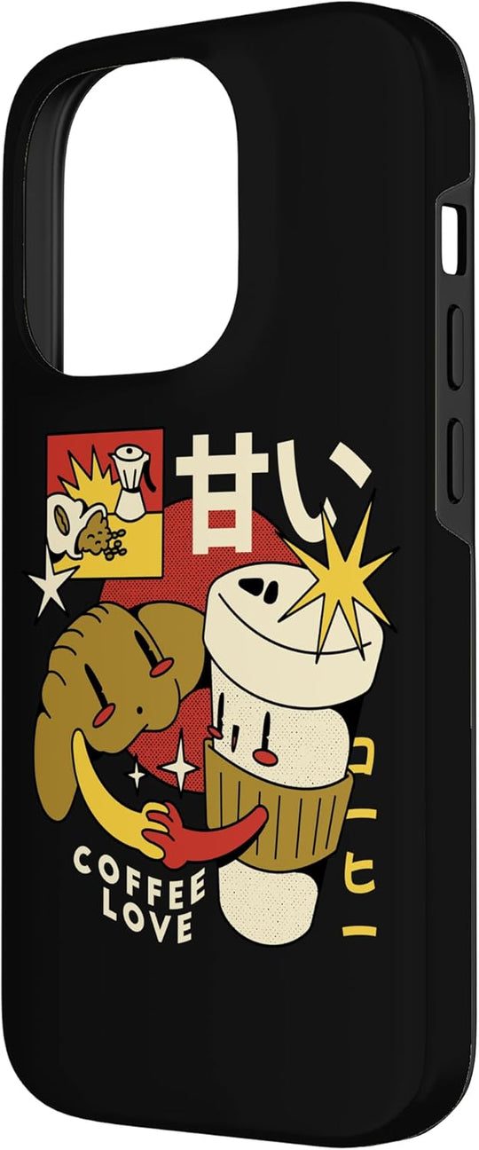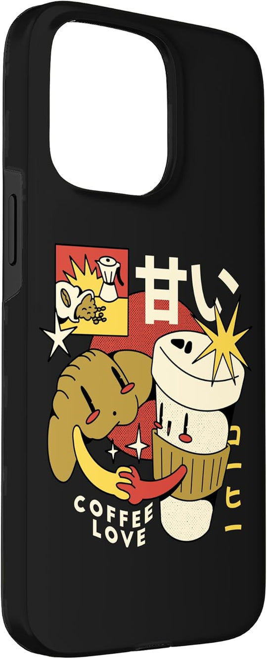 かわいい コーヒー クロワッサン 和 カワイイ レトロ ヴィンテージ 漫画 スマホケース iPhone 15 Plus 用