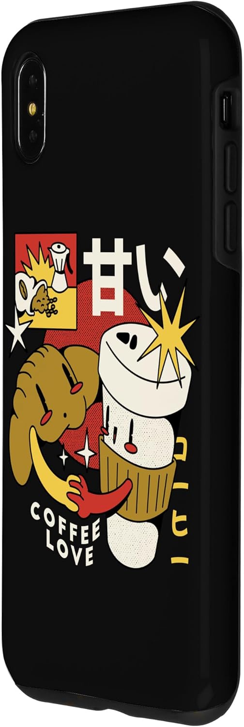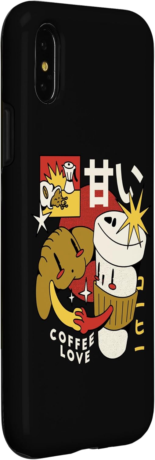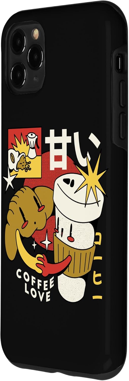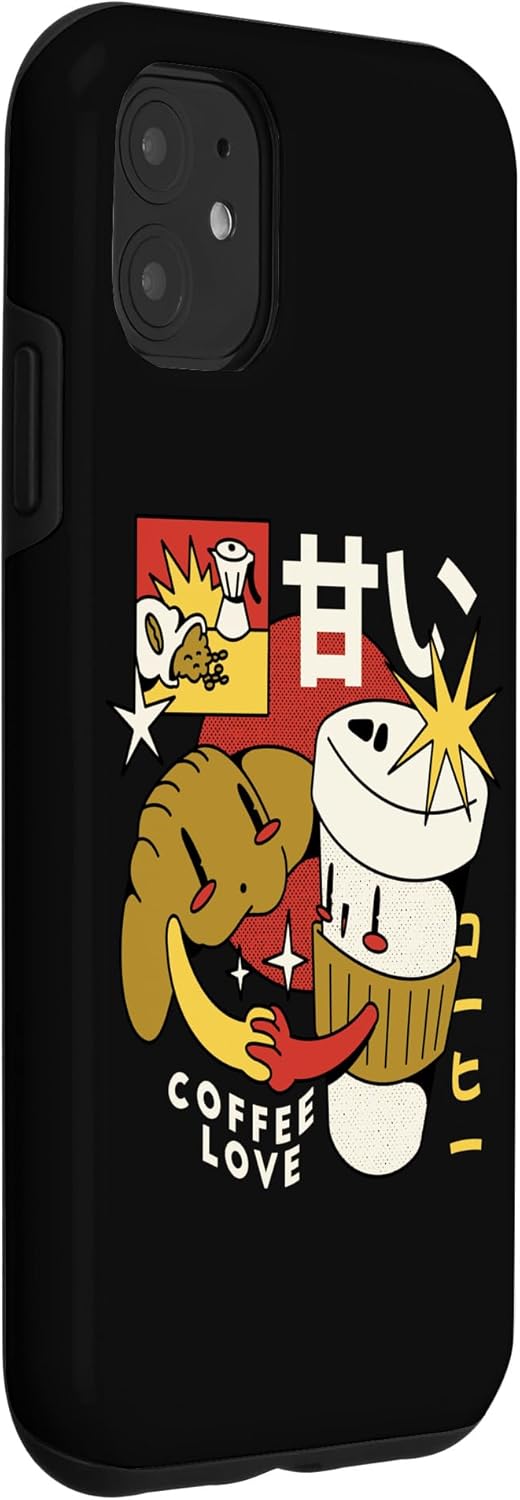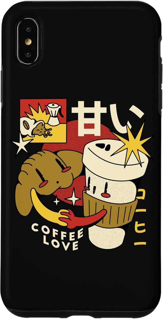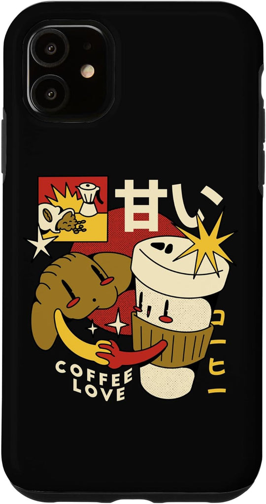 かわいい コーヒー クロワッサン 和 カワイイ レトロ ヴィンテージ 漫画 スマホケース iPhone 15 Plus 用