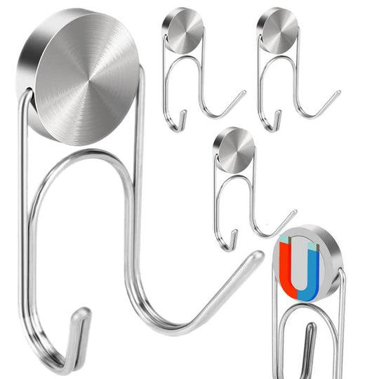 Wowfill マグネット フック マグネット付き 304ステンレス製 防錆 垂直耐荷重28kg 水平耐荷重5kg 防腐食 キッチン用 オフィス用 浴室 冷蔵庫 玄関 壁掛け用 4個(32mm-2-28KG, シルバー)