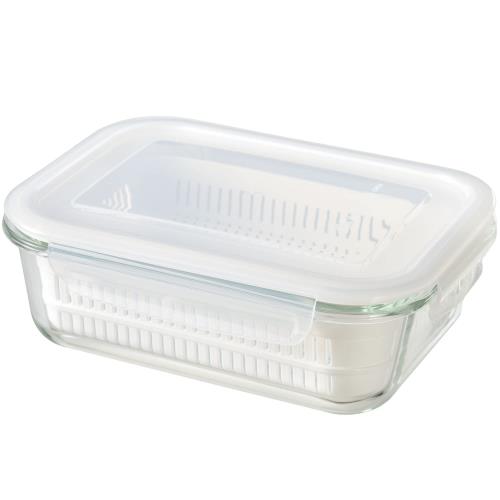 和平フレイズ 耐熱ガラス 容器 M ザル付 水切り コランダー 密閉 4点ロック付 蒸す レンジ オーブン 調理 冷蔵庫 保存 マジカリーノ RE-7362