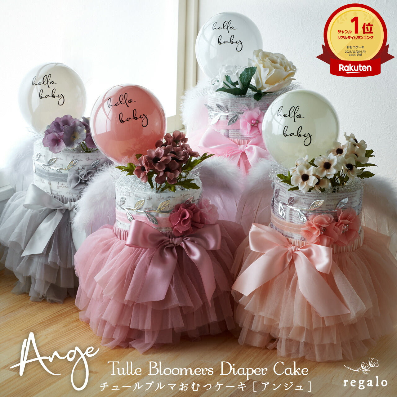 おむつケーキ 出産祝い 女の子 オムツケーキ おしゃれ チュチュ ドレス ベビー チュール ブルマ ヘアバンド バルーン 天使の羽 メッセージカード 上品 マタニティ ギフト 赤ちゃん おむつ アンジュ Ange gift yct regalo