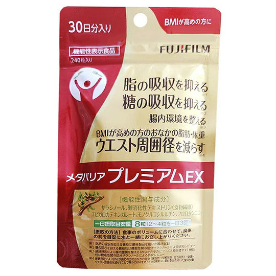 メタバリア プレミアムEX 30日分 240粒【袋タイプ サプリメント サプリ サラシア 腸内環境 糖質 腸活 内臓脂肪 脂肪 体重 健康食品 ウエスト おなか BMI 健康管理 高め 富士フイルム 機能性表示食品 メタバリアEX シリーズ】