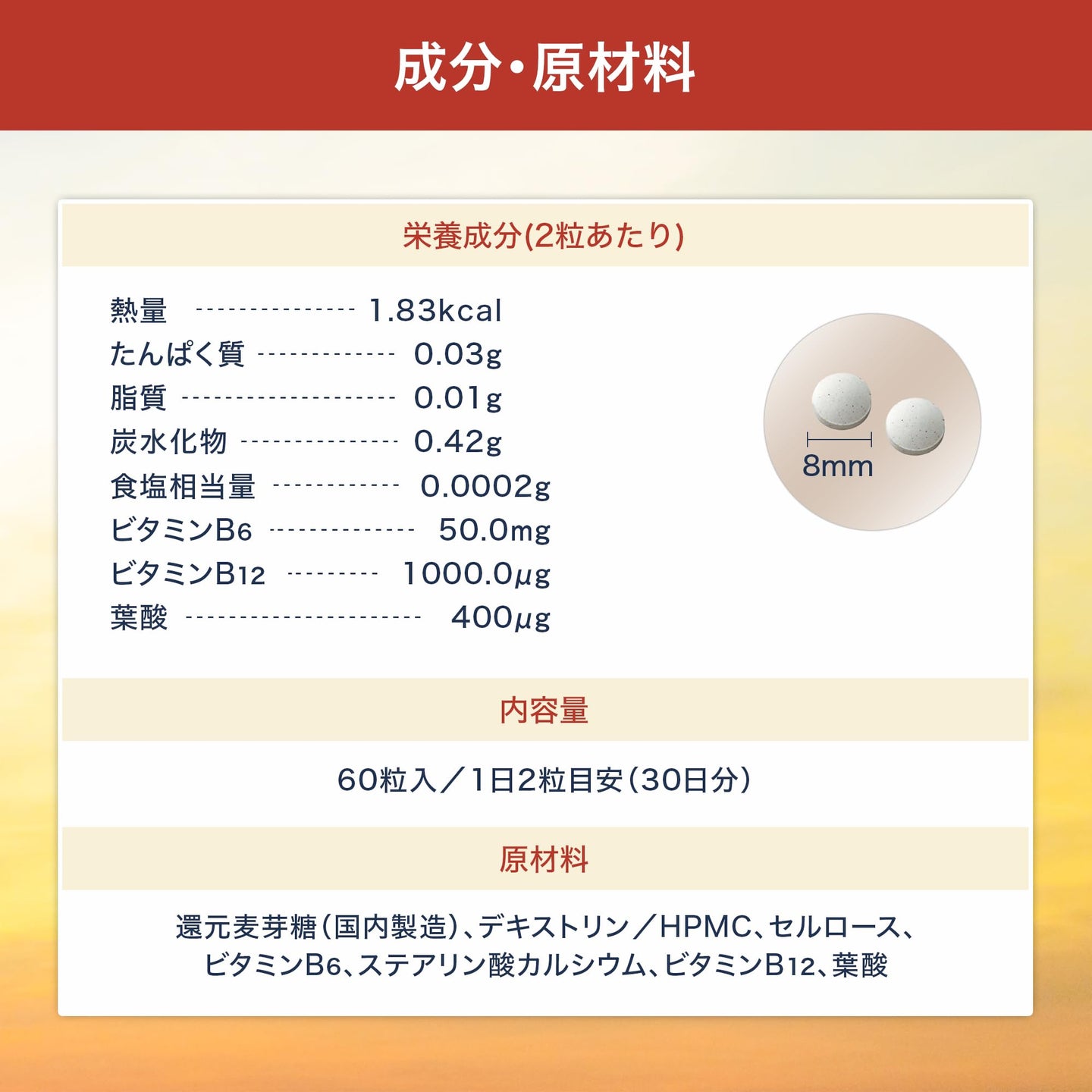 | プライマリサプリメントタイプ | ビタミンB12 |