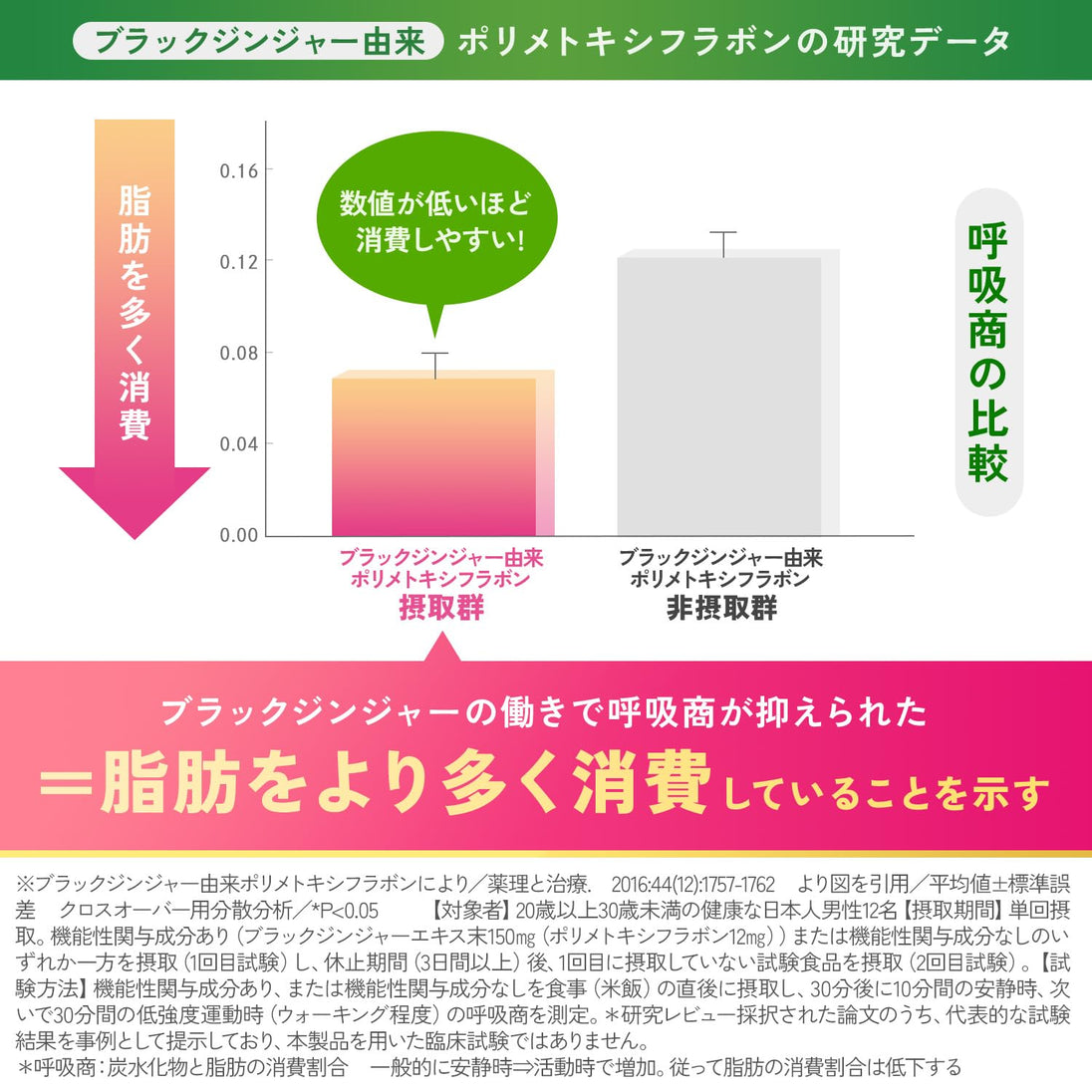 • 【届出表示】本品には桑の葉イミノシュガー・キトサン・茶花サポニン・ブラックジンジャー由来ポリメトキシフラボンが含まれます。本品は、食事の糖や脂肪の吸収を抑えて、食後の血糖値と血中中性脂肪値の上昇を抑える機能があります。またブラックジンジャー由来ポリメトキシフラボンは、脂肪の代謝を助け消費しやすくする機能、BMIが高めの方の腹部の脂肪を減らす機能が報告されています。