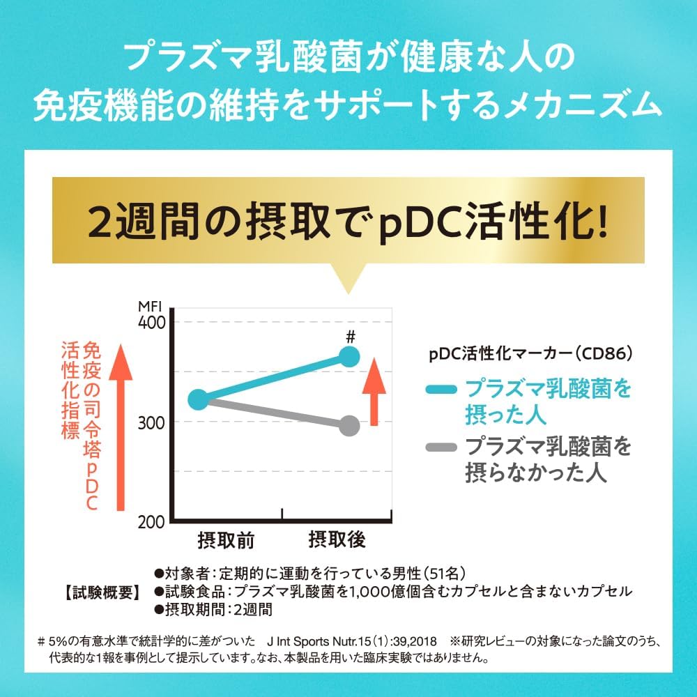 プラズマ乳酸菌はpDC(プラズマサイトイド樹状細胞)に働きかけ、健康な人の免疫機能の維持に役立つことが報告されています。