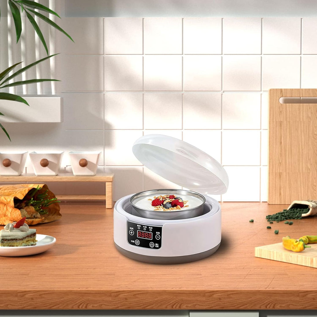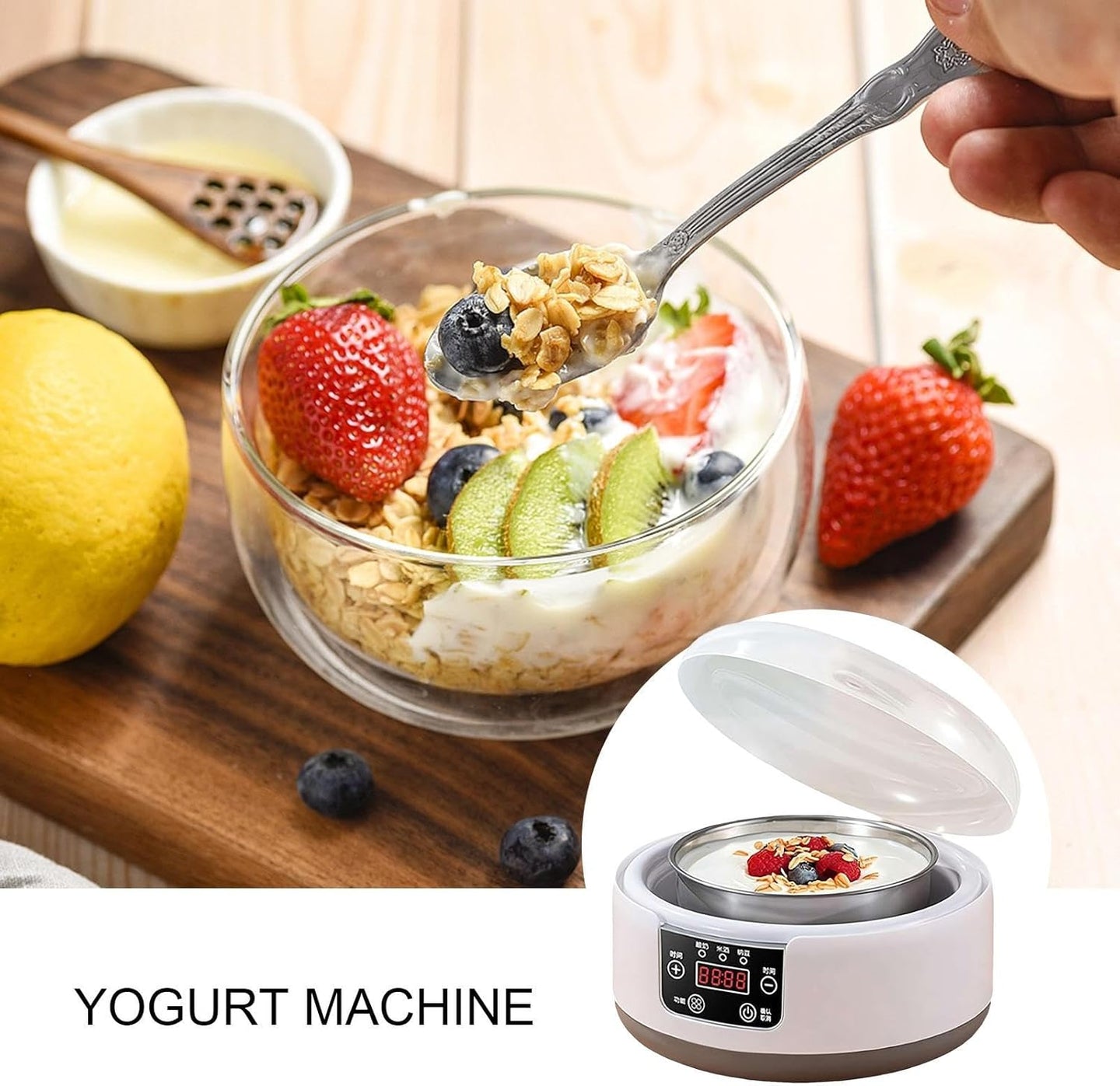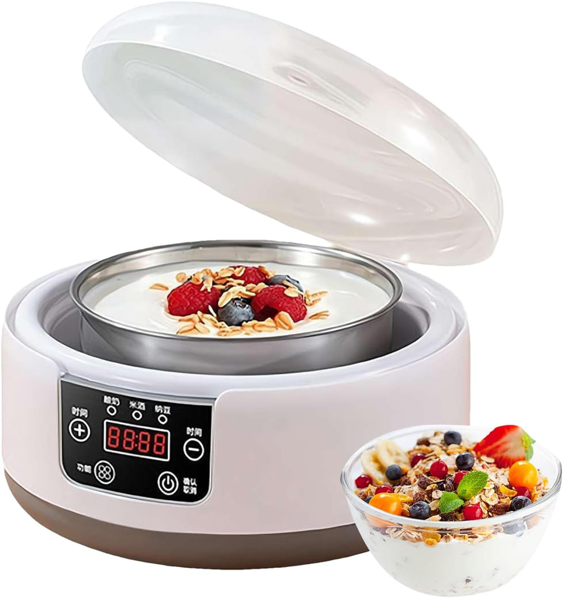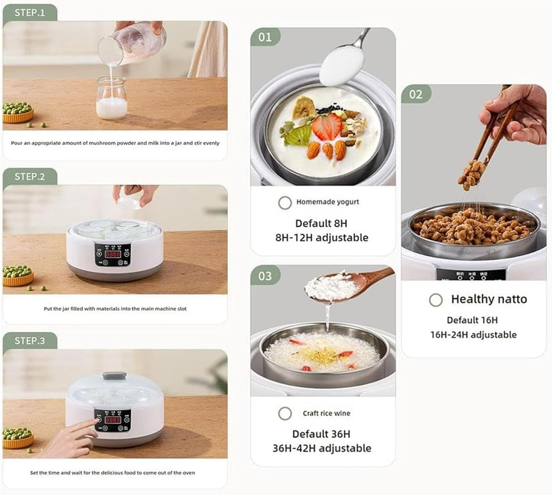 - 頑丈なステンレス鋼:ヨーグルトメーカーの洗練されたデザインには、正確な制御用のデジタルタイマーが組み込まれており、健康的なライフスタイルを求める忙しい人に適しています