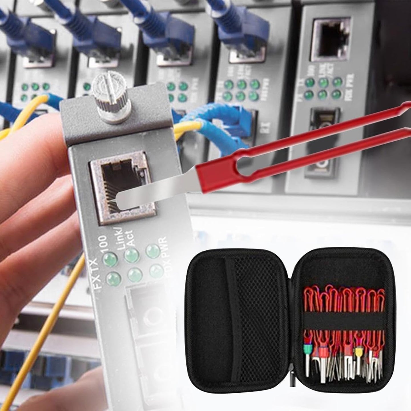 - 完璧な携帯性: 端末取り外しツール キットは、比類のない携帯性を実現するように設計されています。剛性の高い中空ハンドルはスケルトン化されたピンリリースツールを備えており、どこでも簡単に使用できます。さらに、人間工学に基づいたデザインにより快適さが保証され、頻繁に使用するモデルをキーチェーンに取り付けられるため、屋外でも簡単にアクセスできます。