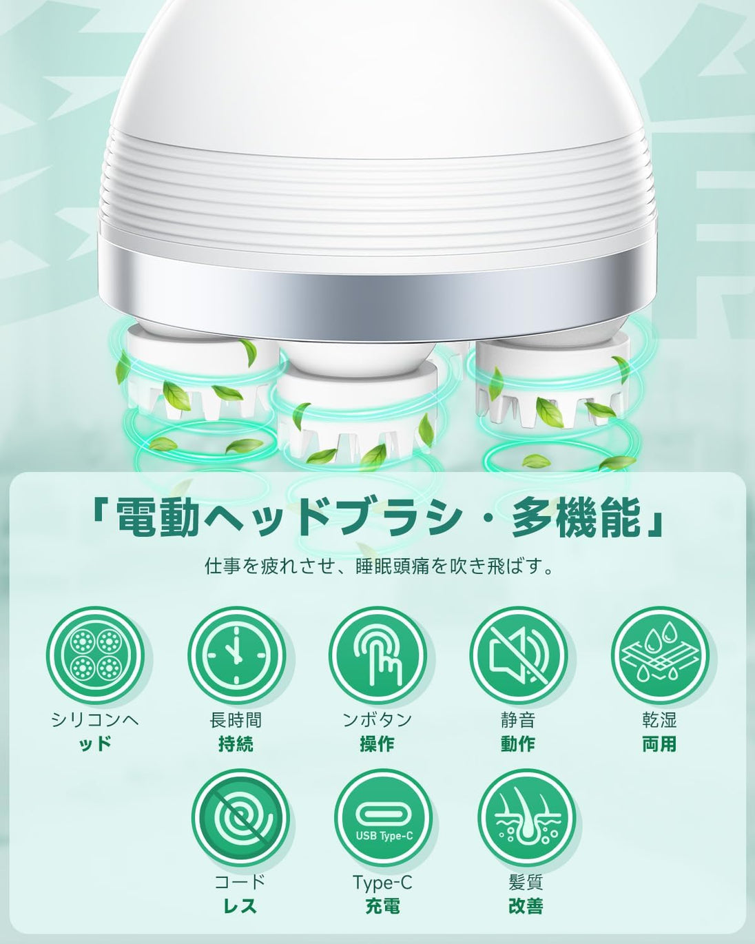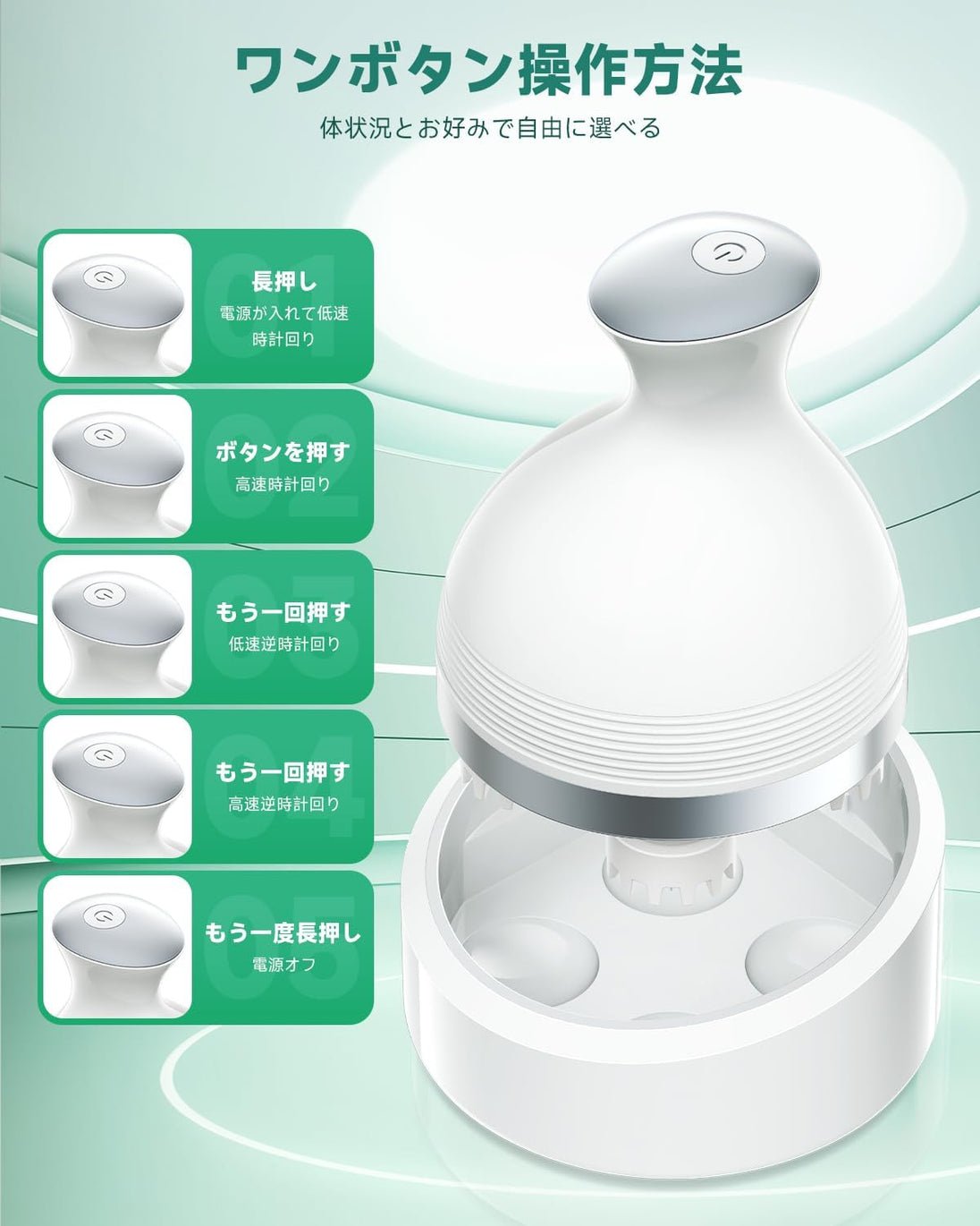 • 【すごうでヘッドケア】プロの技術を参考し、手のひらで握りやすいようにデザインされています。回転可能なヘッドが4つあり、付属品それぞれに19個の独立したテーパ、総計76個の錐形触角があります。プロの技術を模倣し、ただのブラシを超えるサロンレベルの技術を再現できます。