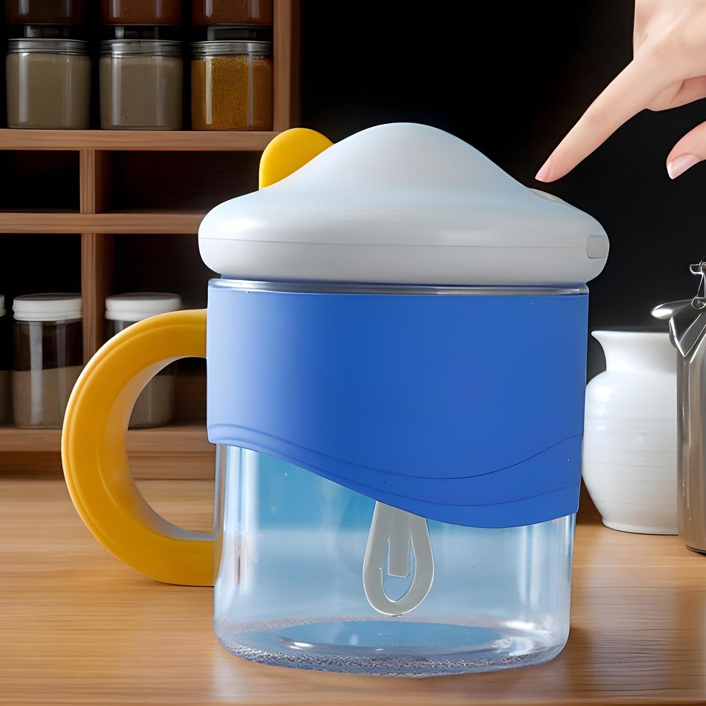 • CUTE DESIGN: Cute design meets your practical needs. Fun colored, mushroom shape with round silicone handle, this stirring mug ensures a comfortable non-slip grip
