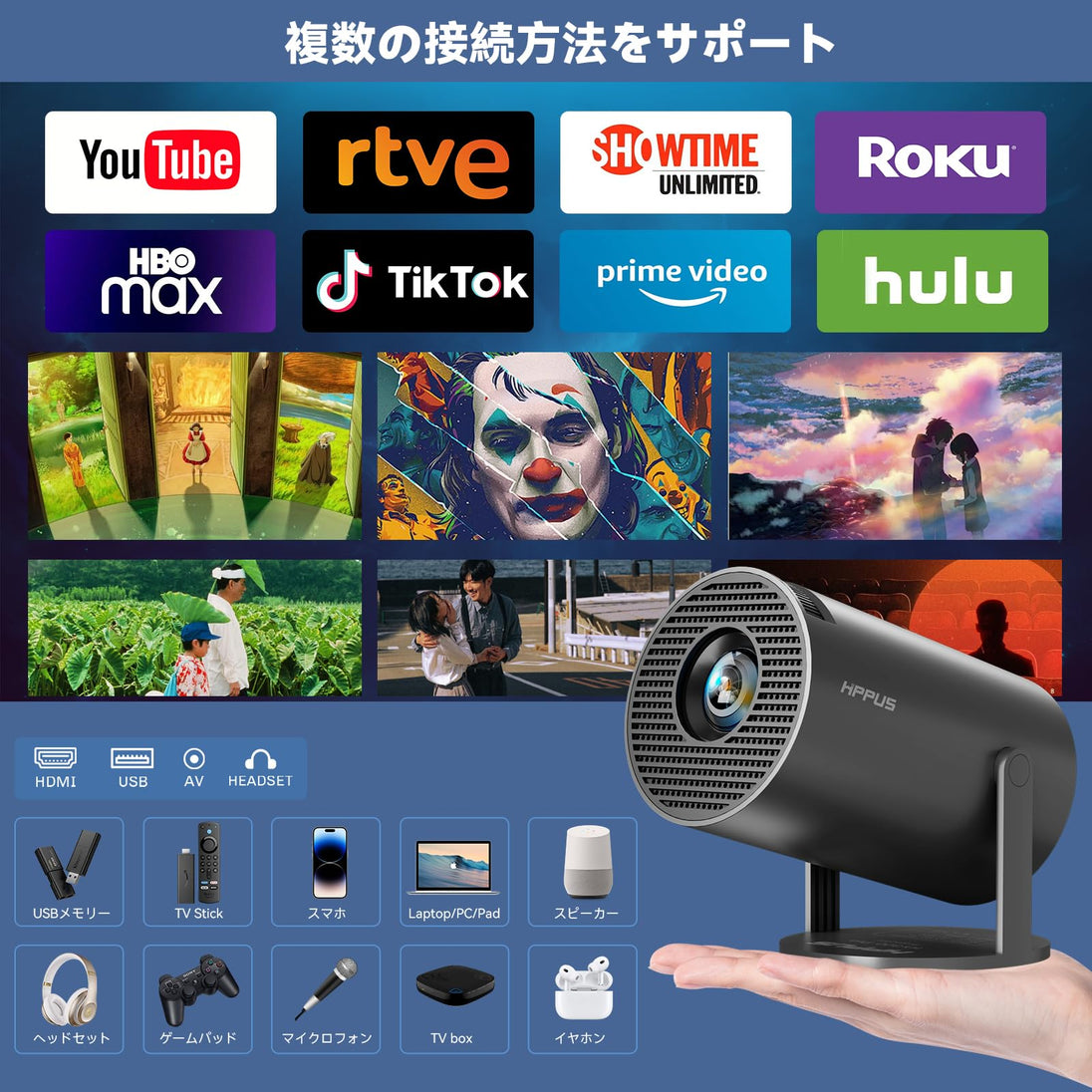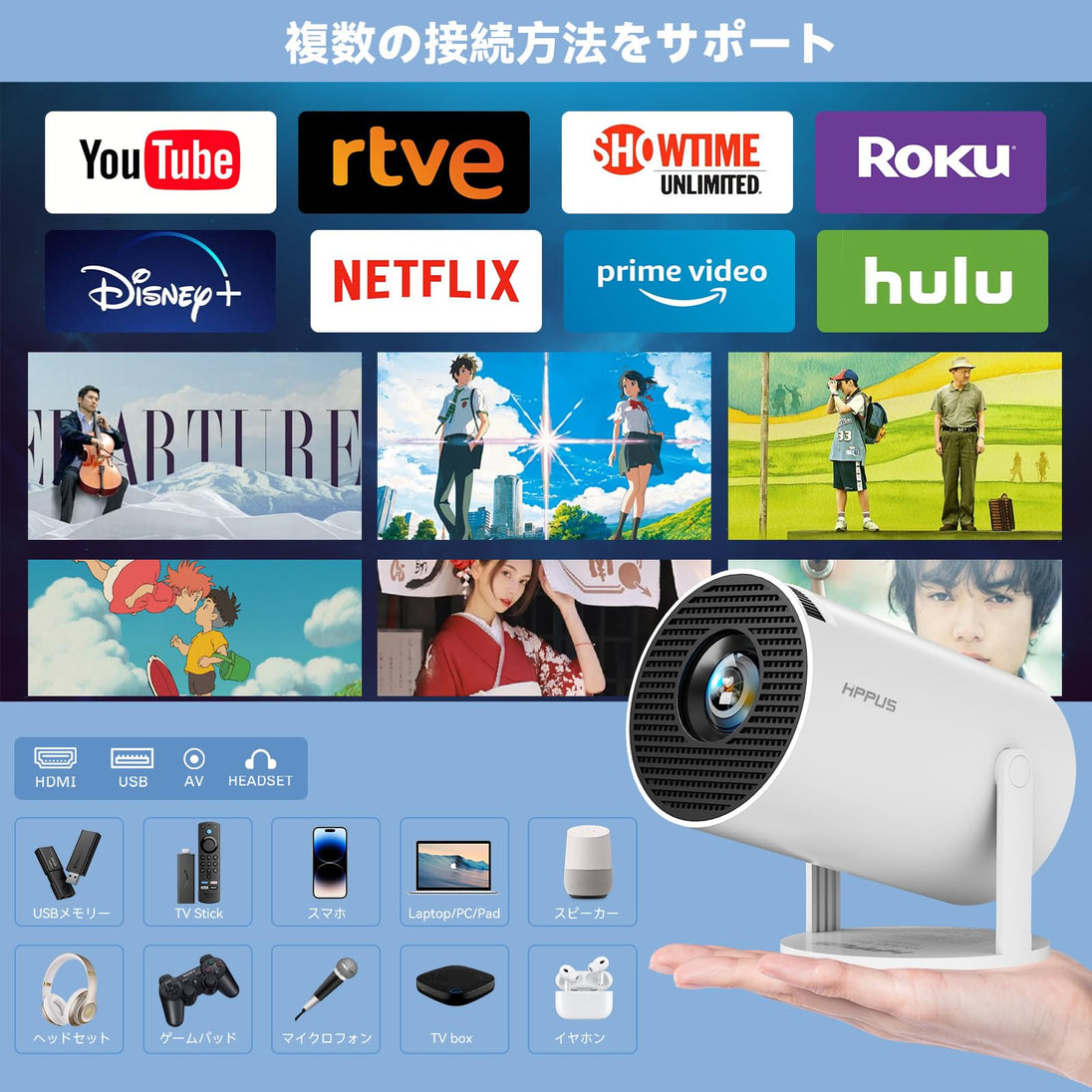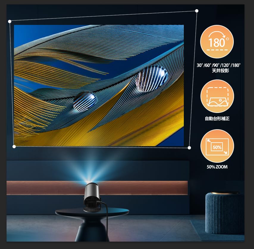 • 【4K/1080P HDムービープロジェクター&350ANSIをサポート】このHY300Proスマートポータブルプロジェクターは、旧型のHY300プロジェクターと比較して、輝度が約2倍の350ANSIに向上し、サポートされる解像度が増加しました。1080Pの高解像度と12000:1の高ダイナミックコントラスト比により、リアルな色彩を忠実に再現します。