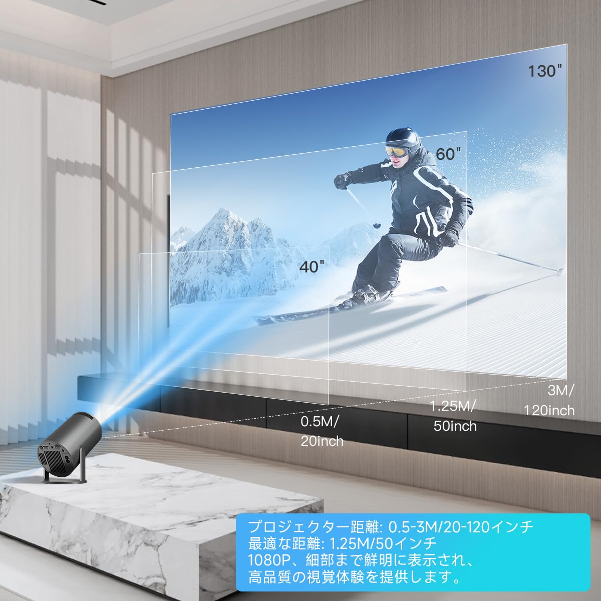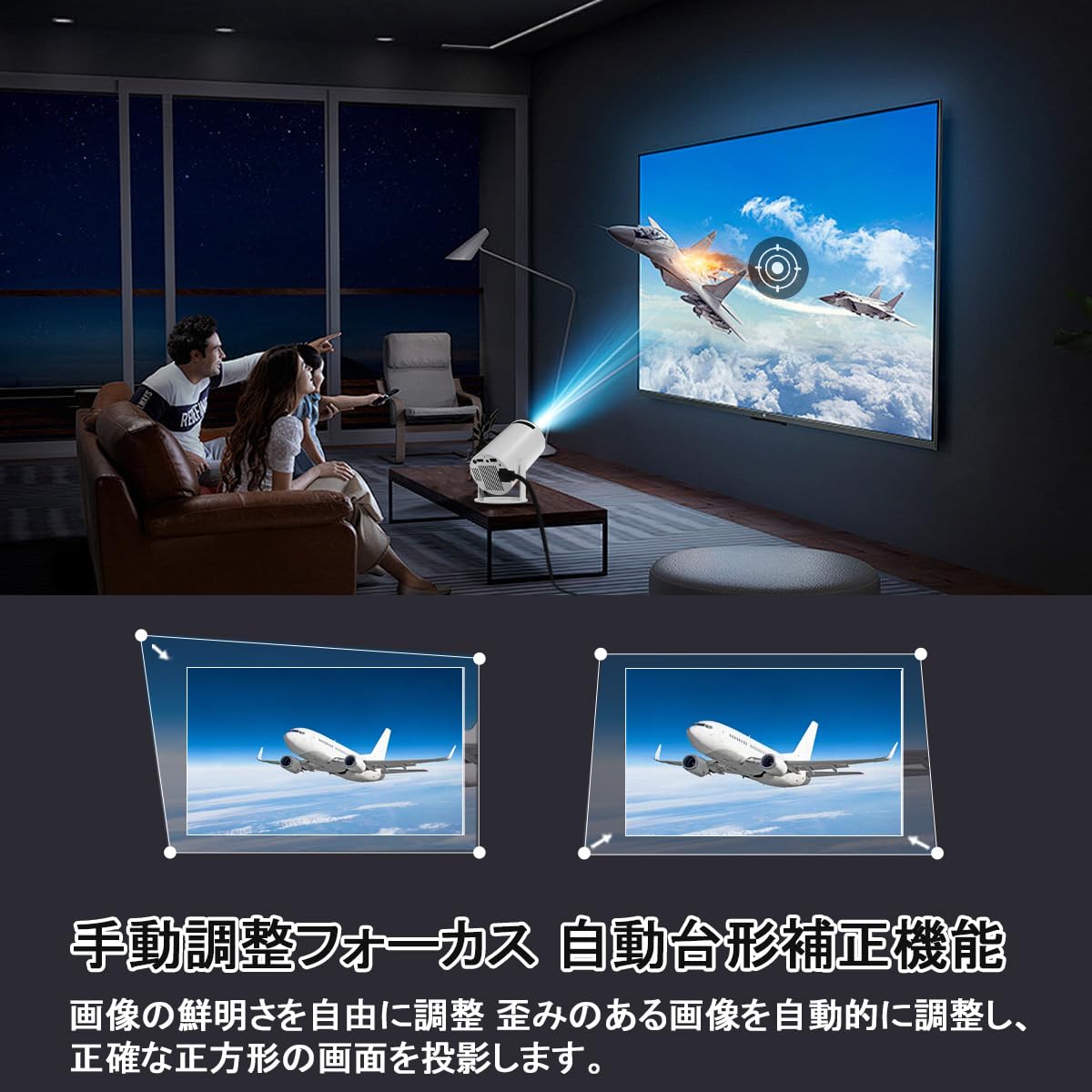 • 【自動台形補正&短焦点】 プロジェクター 家庭用、プロジェクターのサイズはこのビデオプロジェクターは自動台形補正技術を搭載し、マニュアルフォーカスで簡単かつ迅速に鮮明な画像を得るために調整することができます。さらに、この短焦点プロジェクターは最新の0.9:1投影比技術を採用し、0.5m~5mの距離で20~200インチの投影サイズを提供します。