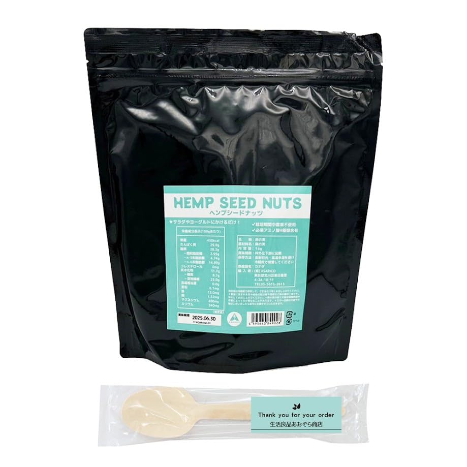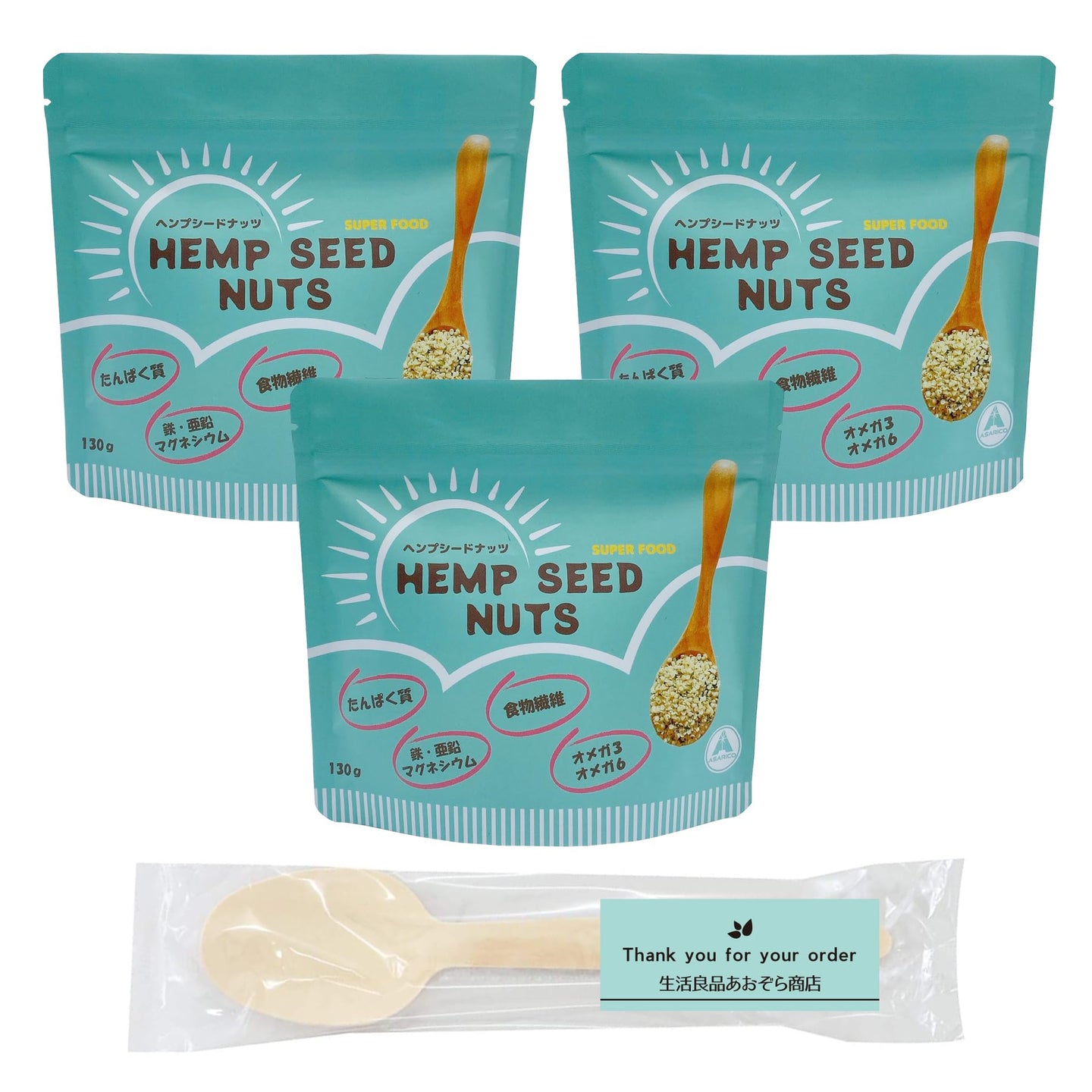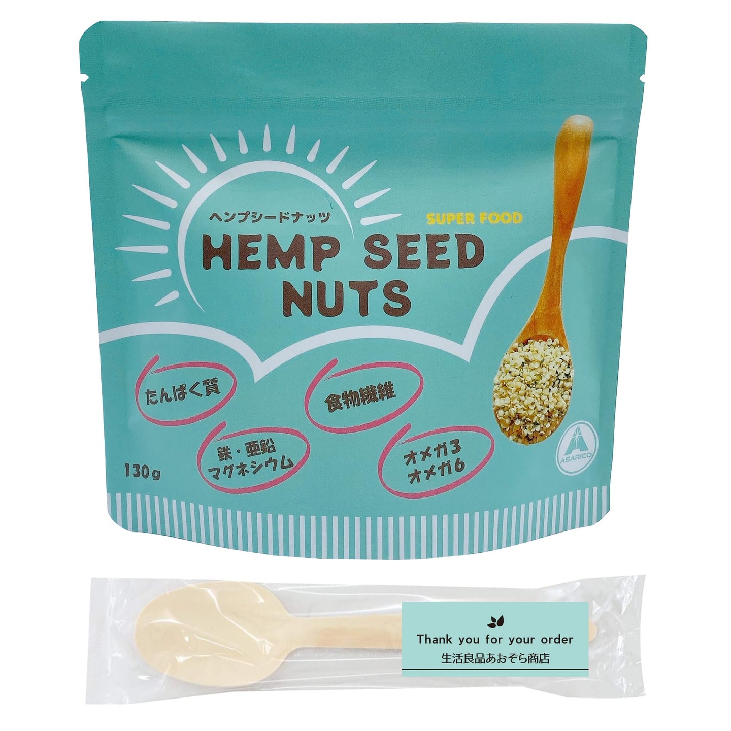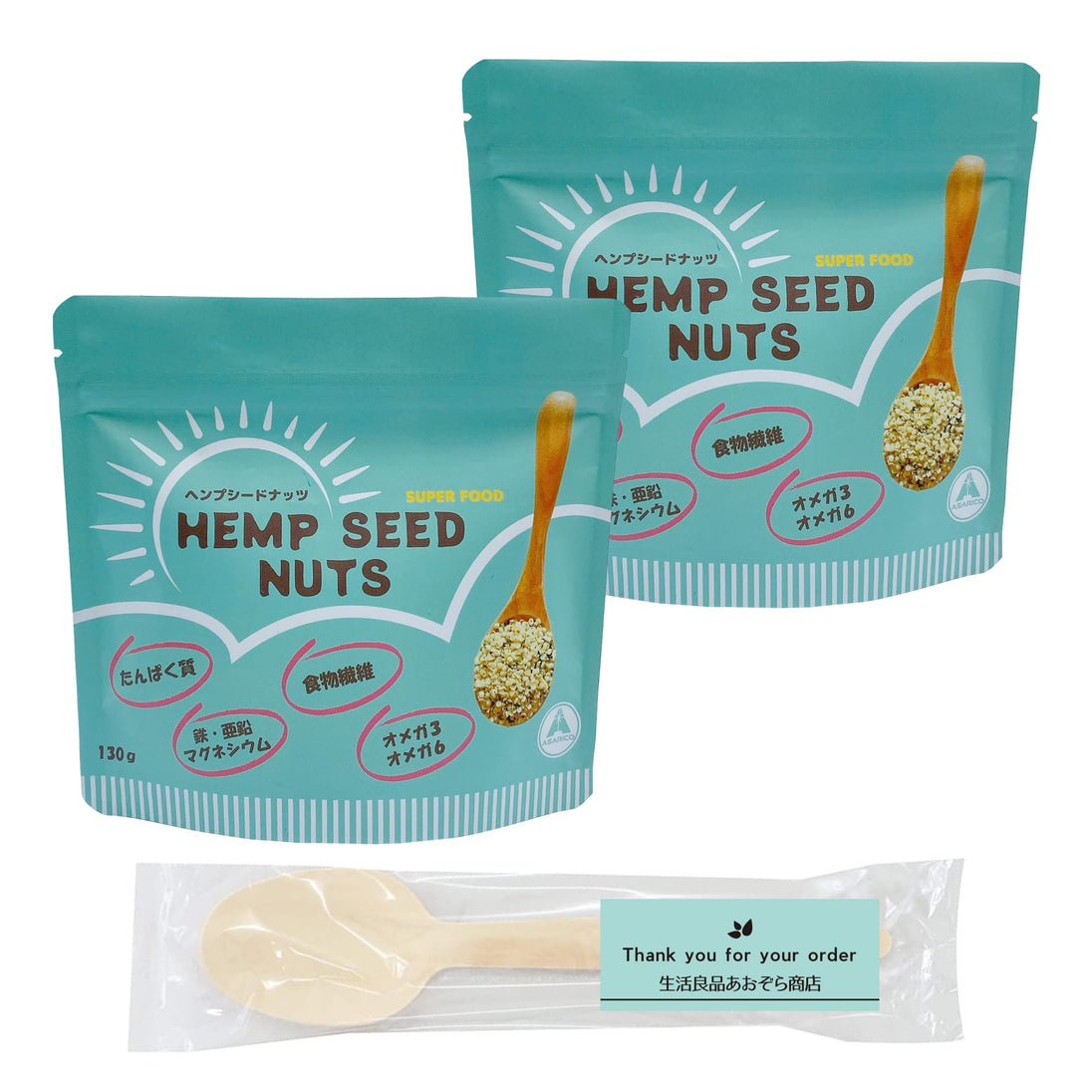 ASARICO 麻の実 ナッツ ヘンプシードナッツ 130g 無農薬 低糖質 スーパーフード ダイエット 健康食品 カナダ産 オリジナルスプーン付き (2袋)