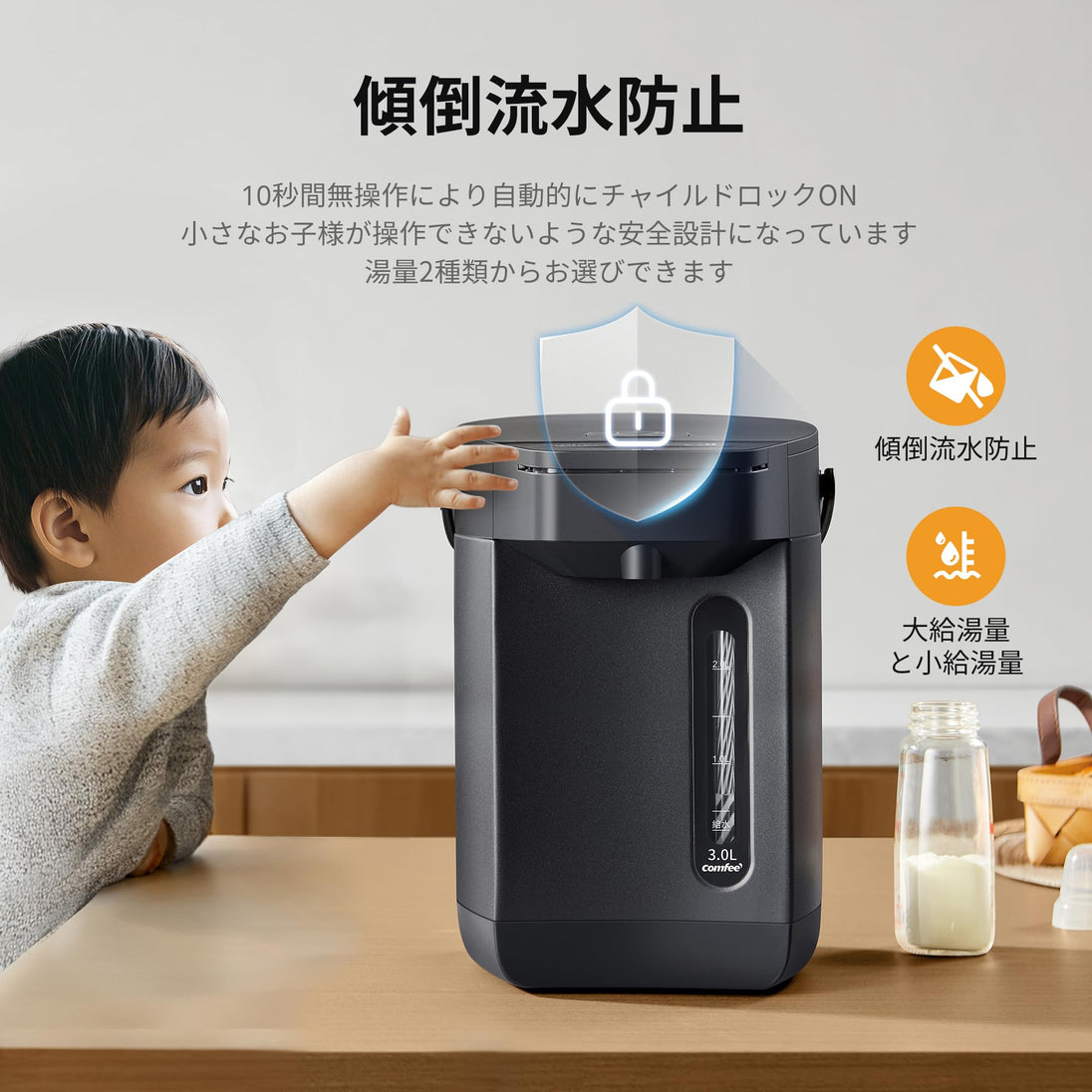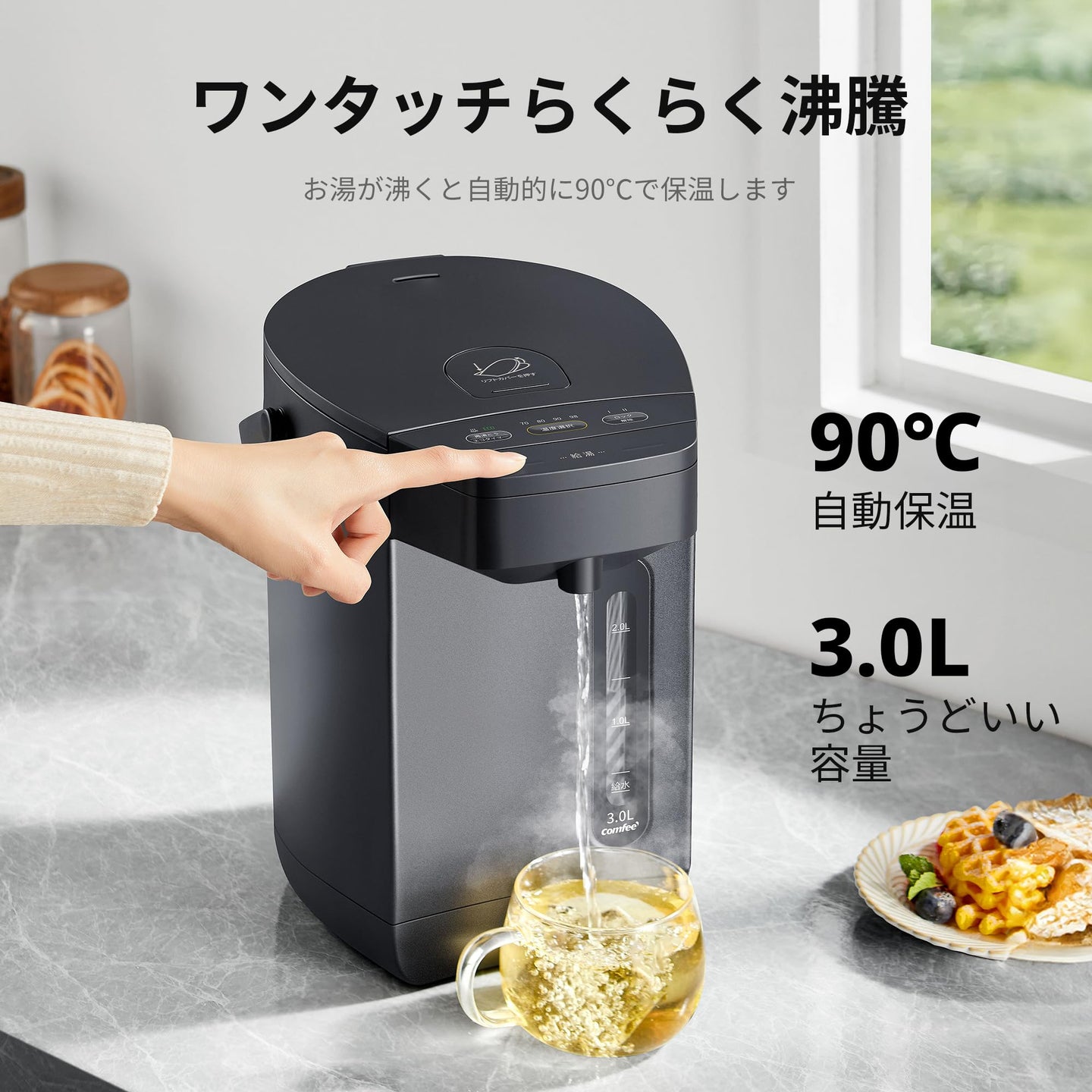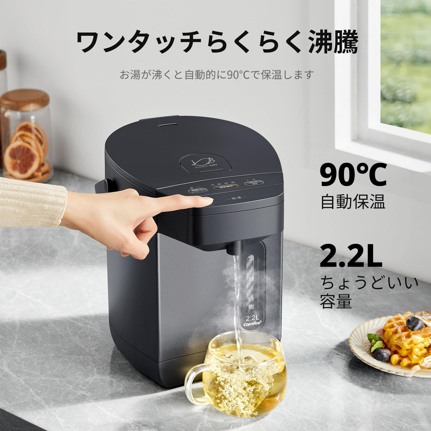 - 【シンプル&スタイリッシュ】COMFEE' の電気ケトルは、あらゆるキッチンに溶け込むとともに、飽きることなくお使いいただけます。