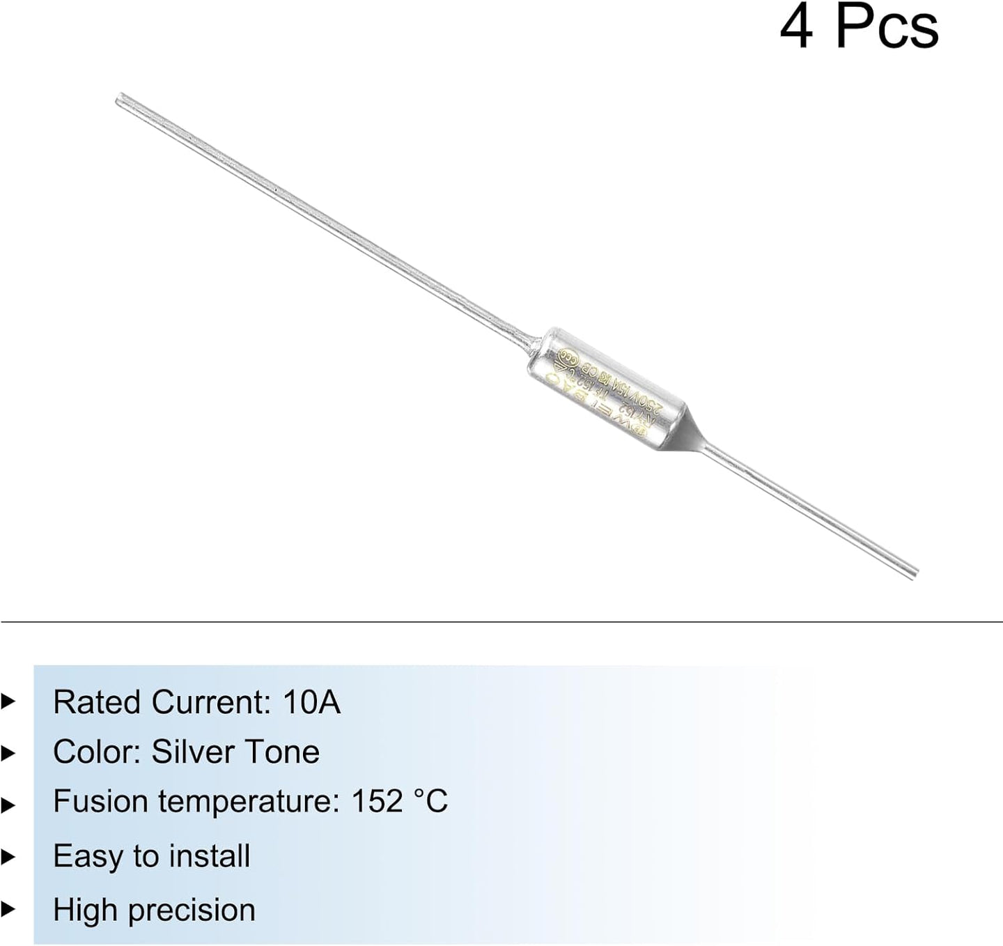 - 定格電圧:AC 250V;定格電流:10A;カラー:シルバートーン;ヒューズサイズ(直径×長さ):4x11mm/0.16x0.43";定格溶断温度:152°C(305.6°F);パッケージに含まれるもの:金属温度サーマルヒューズ4個;