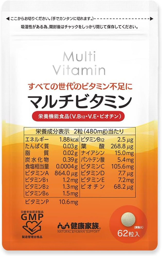 マルチビタミン 62粒入 約31日分 栄養機能食品 ビタミンC ビタミンB12 ビタミンE ビオチン 葉酸