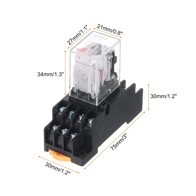 uxcell AC12V 電磁パワーリレー 14ピン AC/DC DPD T 4NO+4NC リレーコイル ソケットベース付き 産業用、家庭用電化製品およびDINレールシステム用 LEDインジケーター付き