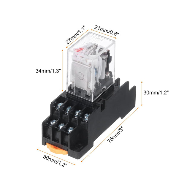 uxcell AC24V Electromagnetic Power Relay 14 Pin AC/DC DPD T 4NO+4NC Relay Coil with Socket Base for Industrial, Household Appliances and DIN Rail Systems with LED Indicator