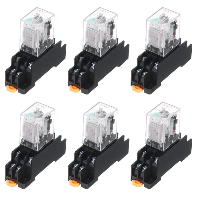 uxcell 6個DC24V電磁パワーリレー8ピンAC/DC DPD T 2NO+2NCリレーコイル 工業用 家庭用電化製品 DINレールシステム用ソケットベース付き LEDインジケーター付き