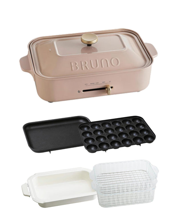 BRUNO ブルーノ コンパクトホットプレート 本体 プレート3種 (たこ焼き セラミックコート鍋 平面) ミント グレー 緑 灰 Mint Gray おしゃれ かわいい これ1台 一台 蓋 ふた付き 1200w 温度調節 洗いやすい 1人 2人 3人用 小型 ひとり暮らし にも A4 サイズ BOE021-MTGY