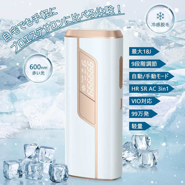 脱毛器【サロン級IPL光脱毛器/低刺激でVIO対応】髭 男女兼用 全身適用 サファイア冷却 高出力 100万発5段階 無痛 ムダ毛ケア 手動/自動照射 家庭用 メーカー2年保証 保護眼鏡/カミソリ付き たった3回で効果実感 母の日