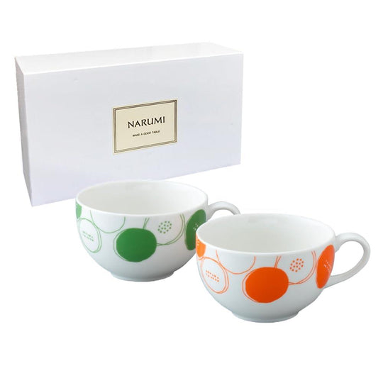 NARUMI(ナルミ) スープカップ セット 水玉 2柄セット オレンジ グリーン 390cc かわいい ポップ 大きめ 電子レンジ オーブン対応 日本製 ギフト箱入り 41797-33554