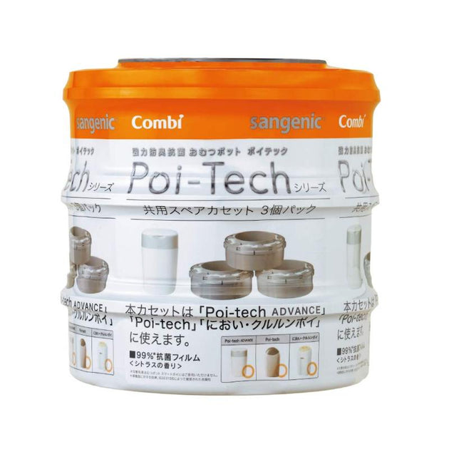 コンビ 紙おむつ処理ポット 強力防臭抗菌 おむつポット ポイテック シリーズ ホワイト 共用スペアカセット 3個 (旧型ポイテック/ポイテック アドバンス 本体両方使用可能) (x 1)