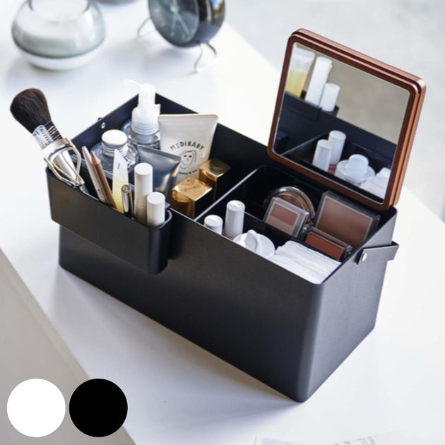 【レビュー特典付き】 山崎実業 tower メイクボックス タワー ( 4903208054539 タワーシリーズ コスメボックス 収納 持ち運び 鏡付き コスメケース スリム コンパクト 化粧品 小物入れ ふた付き 大容量 取っ手 救急箱 裁縫箱 )【39ショップ】
