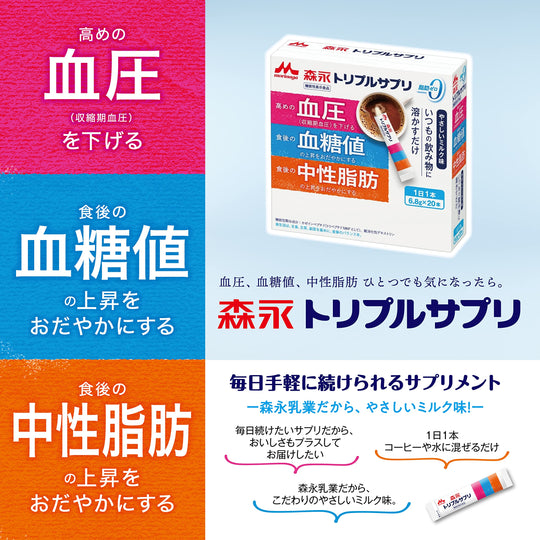 【森永乳業 公式】森永トリプルサプリ [ 機能性表示食品 中性脂肪 血糖値 血圧 サプリ ペプチド デキストリン ] 30本/1箱