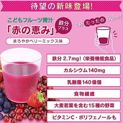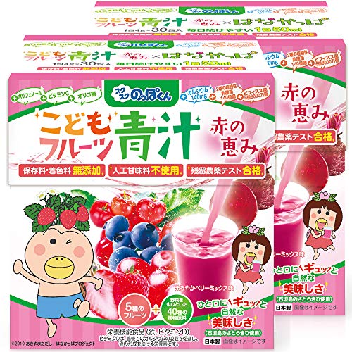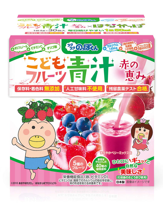 こどもフルーツ青汁 赤い青汁 1箱30包 顆粒 ベリー味 野菜 鉄分不足 偏食 少食 成長 身長 体重 栄養 カルシウム ビタミンD 乳酸菌 国産 はなかっぱ