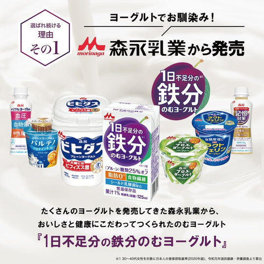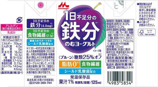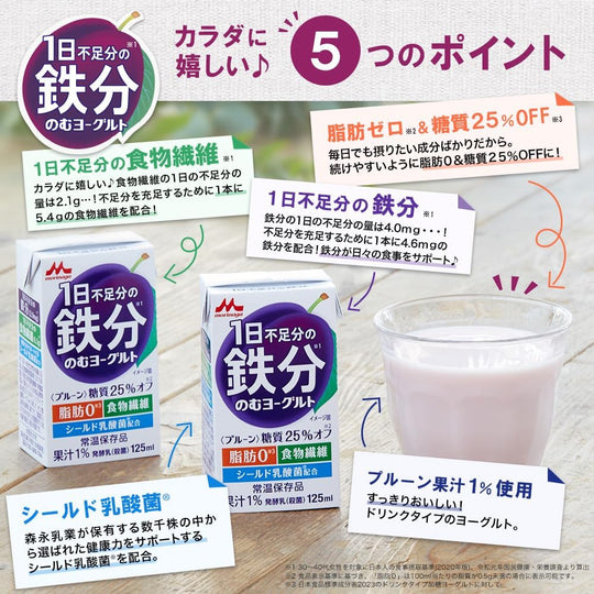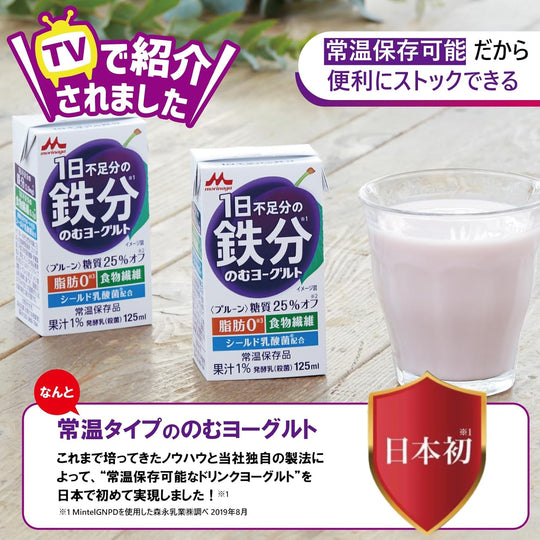 森永 1日不足分の鉄分 のむヨーグルト プルーン 125ml 【常温保存品 鉄分 食物繊維 乳酸菌配合】×24本