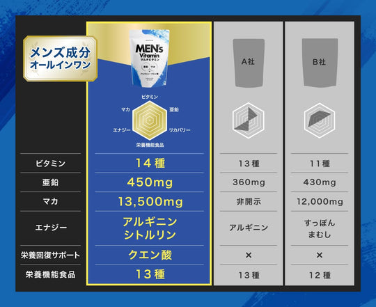 アンビーク メンズマルチビタミン 亜鉛 マカ 錠剤 ビタミン14種 クエン酸 アルギニン シトルリン 即効チャージ 持続型 栄養機能食品 ビオチン (1袋)