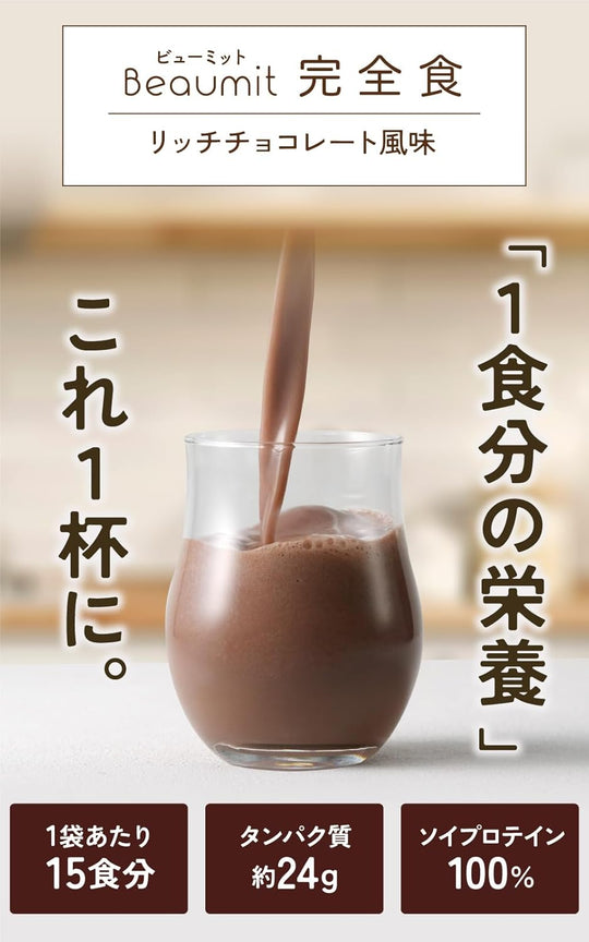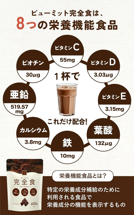 Beaumit 完全食 ソイプロテイン600g 完全栄養食 たんぱく質24g ダイエット 置き換えダイエット チョコレート味 国際中医師監修 人工甘味料不使用 140kcal 栄養機能食品 国内製造 ビタミン13種類 ミネラル12種類