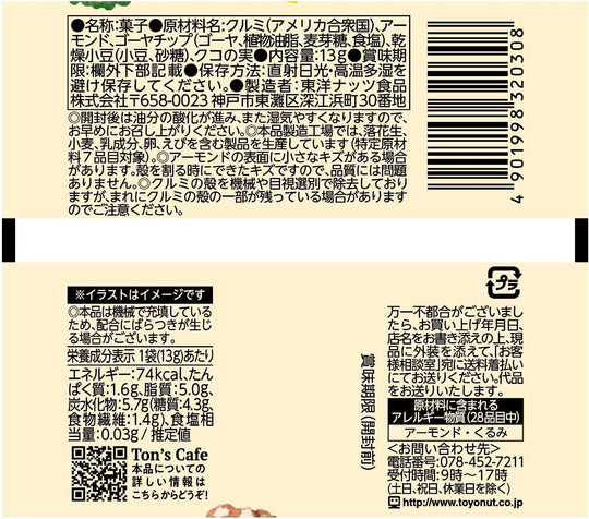 商品紹介 ゴーヤチップス、スナックあずき、クコの実、クルミ、アーモンドを配合した5種ミックスです。 個包装なので持ち運びにも便利。一箱20パック入り、小箱なので散らばることなく保管できます。 創業1959年/神戸のナッツ専門メーカーがナッツそれぞれに適した焙煎方法で仕上げたこだわりの味をお楽しみください。 原材料・成分 クルミ(アメリカ合衆国)、アーモンド、ゴーヤチップ(ゴーヤ、植物油脂、麦芽糖、食塩)、乾燥小豆(小豆、砂糖)、クコの実 原材料:クルミ(アメリカ合衆国)、アーモンド、ゴーヤチップ(ゴーヤ、植物油脂、麦芽糖、食塩)、乾燥小豆(小豆、砂糖)、クコの実 商品サイズ(高さx奥行x幅):9.5cm×10.5cm×28.5cm › もっと見る ブランド ButterFox パッケージ重量 0.39 キログラム ユニット数 1.0 グラム メーカー 東洋ナッツ食品Giá thông thường 1,544Giá thông thường 1,544 -