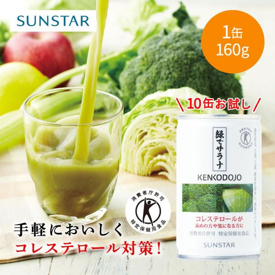 サンスター 特定保健用食品 緑でサラナ 160g×10缶 野菜ジュース 青汁 コレステロールが気になる方に 野菜飲料 保存料無添加 トクホ 健康食品 お試し