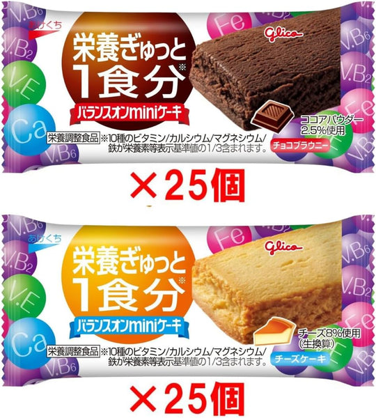 グリコ バランス栄養食セット 50個 タワー型BOX入り バランスオンminiケ―キ チョコブラウニー & チーズケーキ 栄養補助食品 ケーキバー