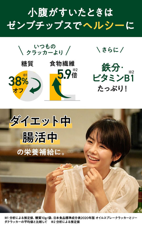 ☕植物由来の素材でつくった低糖質※の豆チップス:うす皮までまるごと使った黄えんどう豆にオリーブオイルを加えて丁寧に焼き上げ、味付けは岩塩だけで仕上げたシンプルなおいしさの豆クラッカー(ゼンブチップス)。小麦不使用のグルテンフリー※1で素材本来のおいしさが味わえます。※ゼンブチップス1袋24g当たり10.0g 分析による推定値。 ※1本品のグルテン濃度は10ppm以下ですが、小麦アレルギーの方に対応するものではありません。 ☕ノンフライのヘルシー豆チップス:高温かつ短時間で焼き上げることで、豆の香ばしい香りを引き出し、パリッとサクッとした食感が、また食べたくなる味わいです。 ☕低糖質、食物繊維たっぷり※2 :いつものクラッカーより食物繊維5.9倍、糖質30%オフ、塩分50%オフ、鉄分5.2倍(※2)。※2:分析による推定値。日本食品標準成分表2020年版オイルスプレークラッカーとソーダクラッカーの平均(100g当たり比較)。チップス1袋24g当たり糖質10.0g。チップス100gあたり食物繊維12.5g、糖質41.8g、食塩相当量0.8g、鉄分3.9mg ☕こんな方におすすめ:小腹がすいたときにちょっとつまみたいけど、糖質を控えたい、おつまみもグルテンフリーの食品を食べたい、食物繊維不足が気になる、普段、糖質オフや低糖質のおやつ、こんにゃくチップス、おからクッキー、ロカボ(ローカーボ)商品、パスタスナック、ダイエット食品や置き換えダイエット食品などを食べている方。置き換えダイエット(おきかえダイエット)やダイエットをしていて食物繊維を取りたい方。プラント ベースフード(植物由来の食品)をお探しの方。大豆ライス ( ダイズライス ) を食べている方。小腹がすいた時に食べる 食べ物をお探しの方。 *置き換えとはいつもの食事を別のものに変更すること ☕食事がちゃんととれていない方や糖質制限したい方におすすめです。 ☕栄養成分: ゼンブチップス(1食1袋(24g)中):エネルギー 115kcal、たんぱく質 3.7g、脂質 6.0g、 糖質 10.0g、食物繊維 3.0g、食塩相当量 0.2g ☕アレルギー情報 (特定原材料等28品目): 原材料に含まれるアレルギー物質はありません。製造工場等では特定原材料8品目中、くるみ・小麦・卵・乳成分を含む製品を生産しています。パッケージの表示は順次更新していきます。 ☕開封後はお早めにお召し上がりください。 商品の特性上、ワレ・カケが発生する場合があります。表面の白い粉は岩塩です。色が濃い部分は焼きムラです。 ☕セット商品:チップス:6袋(標準36枚)。賞味期限は製造から15ヶ月。賞味期限はご注文日から約30日以上の商品をお届けします。☕メーカー名:株式会社 ZENB JAPAN ☕原産国:日本 ☕その他おすすめ商品 ゼンブブレッド ( zenb...Giá thông thường Từ 2,200Giá thông thường Từ 2,200 -