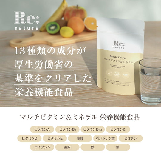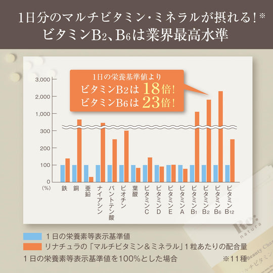 リナチュラ マルチビタミン ミネラル 菌活 美容 ⼤⾖イソフラボン W乳酸菌 シャタバリ 栄養機能⾷品 13種 国産 サプリ 30日分 Re:natura