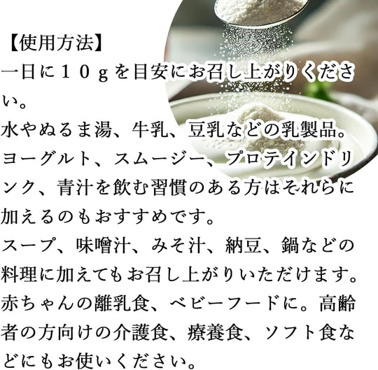 【原材料】ホエイ(国産) 【無添加】(香料、保存料などを使用していません) 【内容量】1kg(約100日分。一日に10gを使用した場合) 【ホエイパウダーについて】ホエイ(乳清)はチーズを作る過程で生産される副産物でラクトフェリン、アルブミン、グロブリン、カルシウム、ビタミン、ミネラル、乳酸菌が含まれます。善玉菌、ビフィズス菌に関連しプロバイオティクス、プレバイオティクスとしても注目されています。 【使い方】国産ホエイを乾燥させて使いやすい粉末にしました。一日に10gを目安にお召し上がりください。水やぬるま湯、牛乳、豆乳などの乳製品。ヨーグルト、スムージー、プロテインドリンク、青汁に加えるのもおすすめです。美容、健康、ダイエットの補助食品として。またクッキー、ケーキ、ホットケーキ、蒸しパンなどの焼き菓子、お菓子やパスタ、ピザ生地の材料にも。 【栄養成分(100gあたり)】熱量372kcal、たんぱく質12.1g、脂質1.1g、炭水化物78.4g、食塩相当量1.3g 【賞味期限】製造日から1年 保存に便利なチャック付き袋入り › もっと見る ブランド 自然健康社 ユニット数 1000.0 グラム 商品の形状 粉末 商品の重量 1 キログラム 商品寸法 (長さx幅x高さ) 10 x 20 x 28 cm 特別な原料 ホエイ 食事タイプ グルテンフリー 対象年齢 大人 商品の個数 1...Giá thông thường 2,948Giá thông thường 2,948