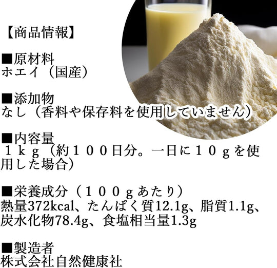 自然健康社 ホエイ パウダー 1kg 国産 粉末 乳清 無添加