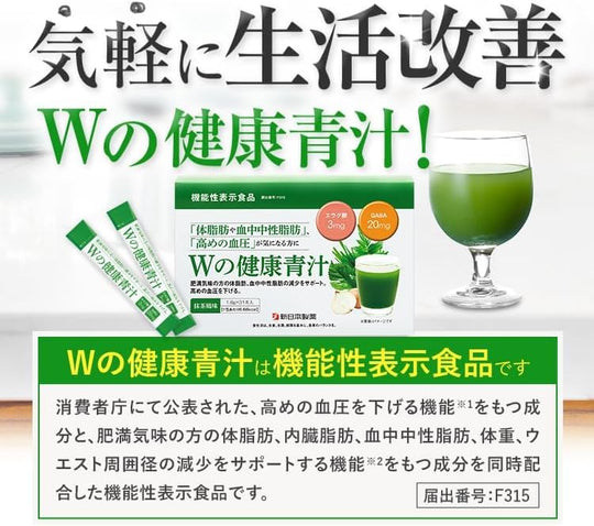 Wの健康青汁 乳酸菌 ビフィズス菌 国産 粉末 機能性表示食品 エラグ酸 GABA 31本入 (単品)