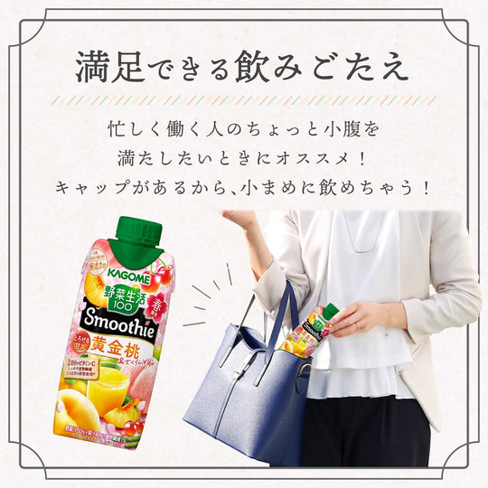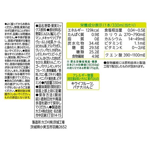 商品紹介 カゴメ 野菜生活100 SmoothieグリーンスムージーMixは1本に1/2日分(175g分)の野菜を使用し、1日分のビタミンC、食物繊維がしっかり摂れる、自然な甘さと飲みごたえのベジタブルスムージーです。キウイ味でスッキリおいしく飲めて、しかも砂糖・甘味料・増粘剤無添加です。朝食のお供や小腹がすいたときにおススメです。 原材料・成分 野菜(にんじん(輸入)、ピーマン、メキャベツ(プチヴェール)、小松菜、ケール、ほうれん草、アスパラガス、クレソン、パセリ、かぼちゃ、レタス、キャベツ、ビート、だいこん、はくさい、たまねぎ、セロリ)、果実(りんご、ぶどう、キウイフルーツ、バナナ、レモン)、食物繊維/香料、クエン酸、乳酸カルシウム、ビタミンC、ベニバナ黄色素、クチナシ青色素 原材料:野菜(にんじん(輸入)、ピーマン、メキャベツ(プチヴェール)、小松菜、ケール、ほうれん草、アスパラガス、クレソン、パセリ、かぼちゃ、レタス、キャベツ、ビート、だいこん、はくさい、たまねぎ、セロリ)、果実(りんご、ぶどう、キウイフルーツ、バナナ、レモン)、食物繊維/香料、クエン酸、乳酸カルシウム、ビタミンC、ベニバナ黄色素、クチナシ青色素 保存方法:常温保存可、容器の形状:パック 内容量:330ml×12本(リニュアールがあり、カタログ情報と異なるリニュアール前の商品が届く場合がありますので、ご了承のほど、よろしくお願いいたします) 栄養成分:330ml カロリー:142kcal たんぱく質:1.0g 脂質:0g 炭水化物:36.5g ナトリウム: 食塩相当量:0.01~0.7g カロリー・330ml当たり カロリー:142kcal 商品サイズ(高さx奥行x幅):16cm×25cm×20cm 単品重量:360g スーパーリーフベジ※1と1/2日分(175g分)※2の野菜を使用し、カルシウムと食物繊維がしっかり摂れる、濃厚スムージー。キウイの爽やかな香りとジューシーな甘さが口いっぱいに広がるおいしさです。砂糖不使用で朝の野菜摂取におススメです。※1葉野菜の中でも、葉野菜に期待させる成分の量などに特徴のあるもの プチヴェールはケールと芽キャベツを掛け合わせて作られた葉野菜です。カルシウムを一般的な小松菜よりも多く含みます。※3 ※3当社分析データより ※2厚生労働省推進・健康日本21の目標値(1日350g)の約1/2である野菜175g分。 葉野菜のうちスーパーリーフベジは82%以上です。食物繊維、カルシウムには原料由来と製造工程で配合したものが含まれます。 › もっと見る 商品の個数 12 ユニット数 12 本 ブランド カゴメ 風味 グリーン...Giá thông thường Từ 0Giá thông thường Từ 0 -