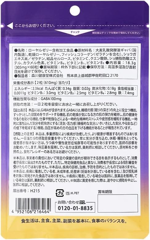 ローヤルゼリー+GABA(ギャバ) 60粒入×2個セット 機能性表示食品 健康サポートサプリ GABA100mg配合 森川健康堂