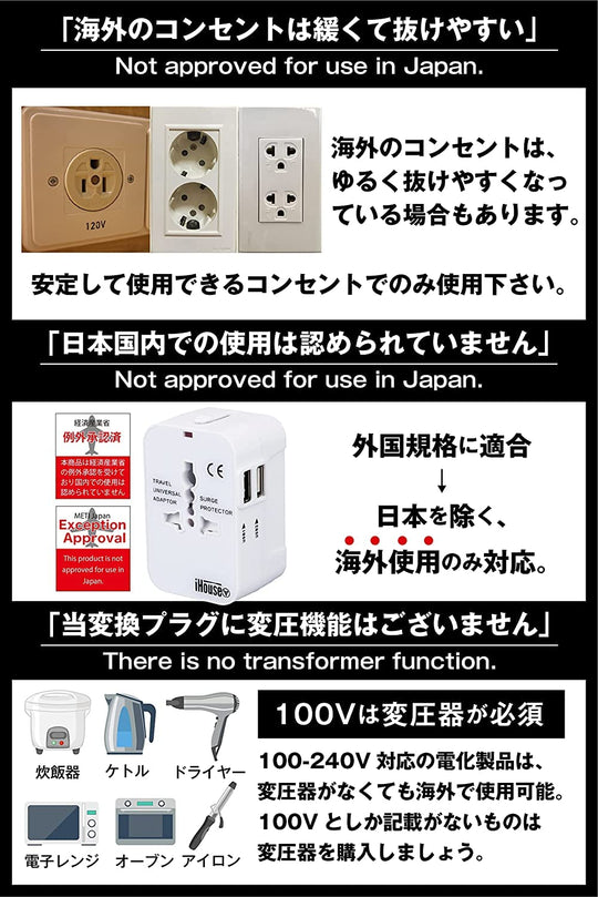 iHouse all 海外変換プラグ コンセ ント変換プラグ マルチ変換プラグ 2U SBポート 全世界対 応 経済産業省承認 正規保証1年