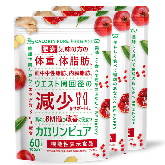カロリンピュア 30日分 肥満気味の方の体重 体脂肪の減少を助ける 血中中性脂肪 内臓脂肪 ウエスト周囲径 の減少をサポート 高めの BMI値 の改善に役立つ 機能性表示食品 18種のサポート成分贅沢配合 コエンザイムQ10 悩み解決ラボ