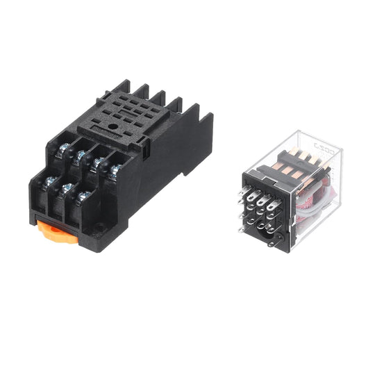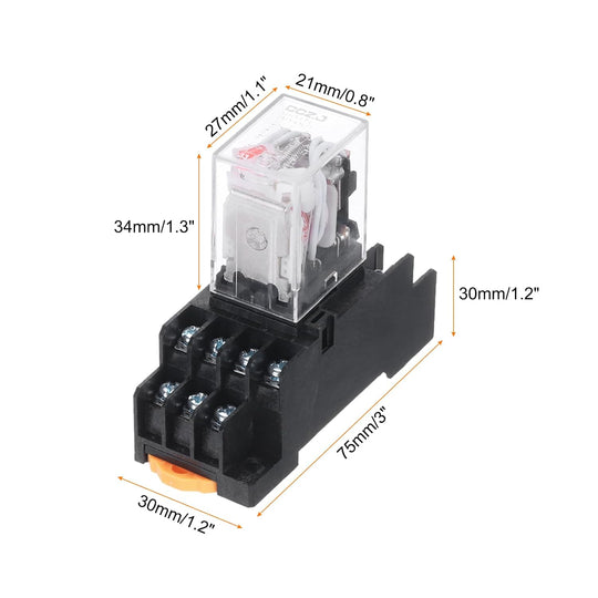 uxcell AC12V 電磁パワーリレー 14ピン AC/DC DPD T 4NO+4NC リレーコイル ソケットベース付き 産業用、家庭用電化製品およびDINレールシステム用 LEDインジケーター付き