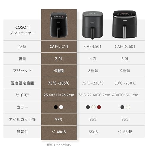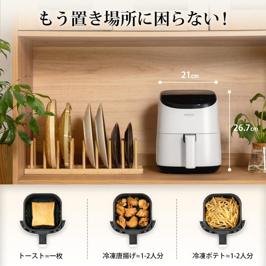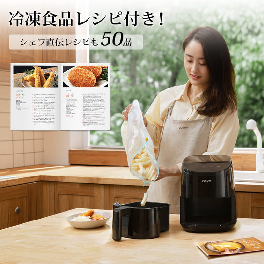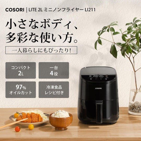 COSORI CAF-LI211-KJP Non-Fryer, For One Person Air Fryer, Cuts 97% Oil, Energy Saving, Mini, Tabletop, Electric, Fryer, Special Recipe, PSE Certified, Black