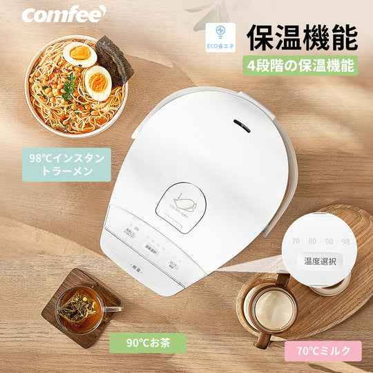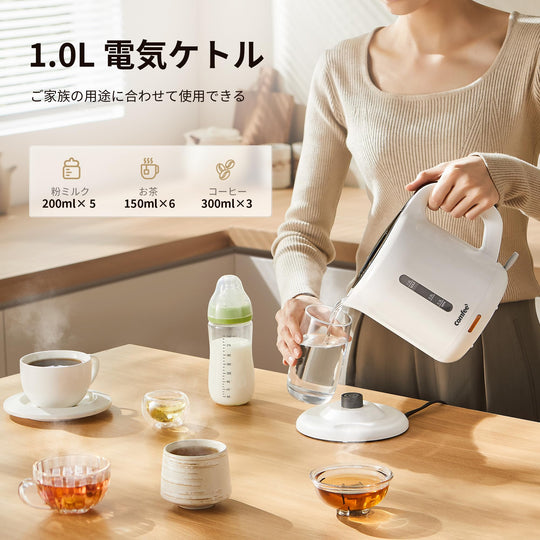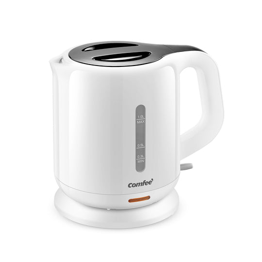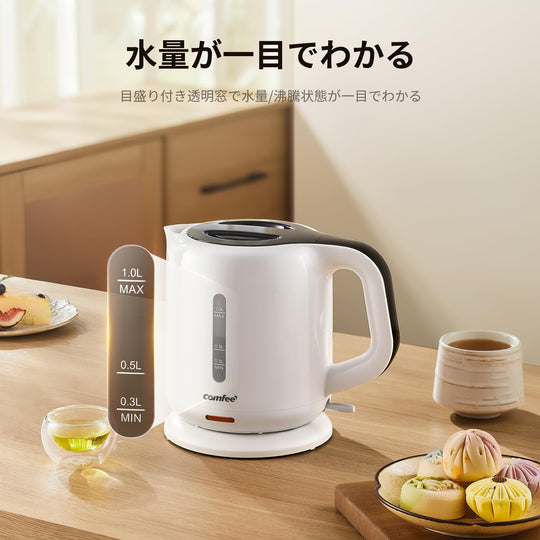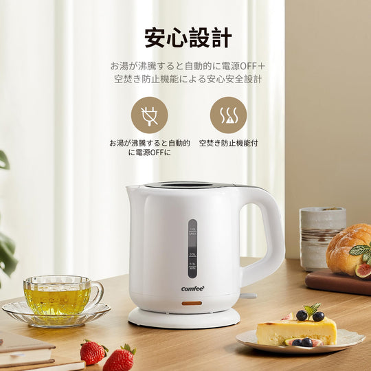 COMFEE' 電気ケトル 1.0L カンタン 急速沸騰 空焚き防止 沸騰自動OFF機能付き お手入れ簡単 コンパクト シンプル 一人暮らしに最適 ホワイト MK-08D03A
