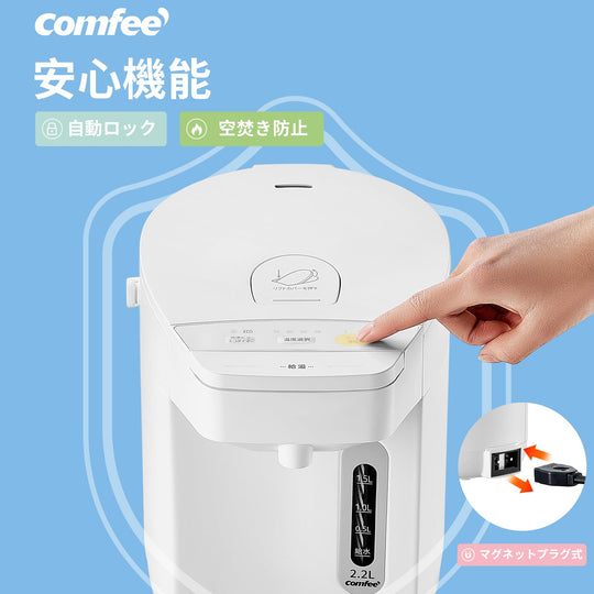 【シンプル&スタイリッシュ】COMFEE' の電気ケトルは、あらゆるキッチンに溶け込むとともに、飽きることなくお使いいただけます。 【カンタン操作・急速沸騰】水量目盛り&電源ライト付き、注水量と沸騰状態をカンタンに確認できます。コーヒー1杯分(140ml)なら約120秒で出来上がり! 電気代もわずか1.08円ぐらいかかります。(1kWh単価 27円で計算) 【空焚き防止機能】容器の水がない状態、またはごく少量で湯沸しした場合、電源スイッチを入れても自動的に電源が切れます。沸騰すると自動電源オフので安心安全。 【一人暮らしに最適な1L】本製品は設置スペースを選ばないコンパクトサイズ、カップ麺2~3人分とコーヒー7杯がまかなえる1L容量ですから、一人暮らしに最適。 【お手入れ簡単】フタ・フィルタが取り外せ、間口も広くてお手入れをラクラクしよう! 外形寸法:幅21.5×奥行18.5×高さ15.0cm;本体質量:約830g;※ 製品保証期間:一年間 › もっと見る ブランド COMFEE' 色 ホワイト 特徴 空だき防止機能 パッケージ情報 ケトル 商品の寸法 20.7長さ x 16.5幅 x 14.2高さ cmGiá thông thường Từ 0Giá thông thường Từ 0 -